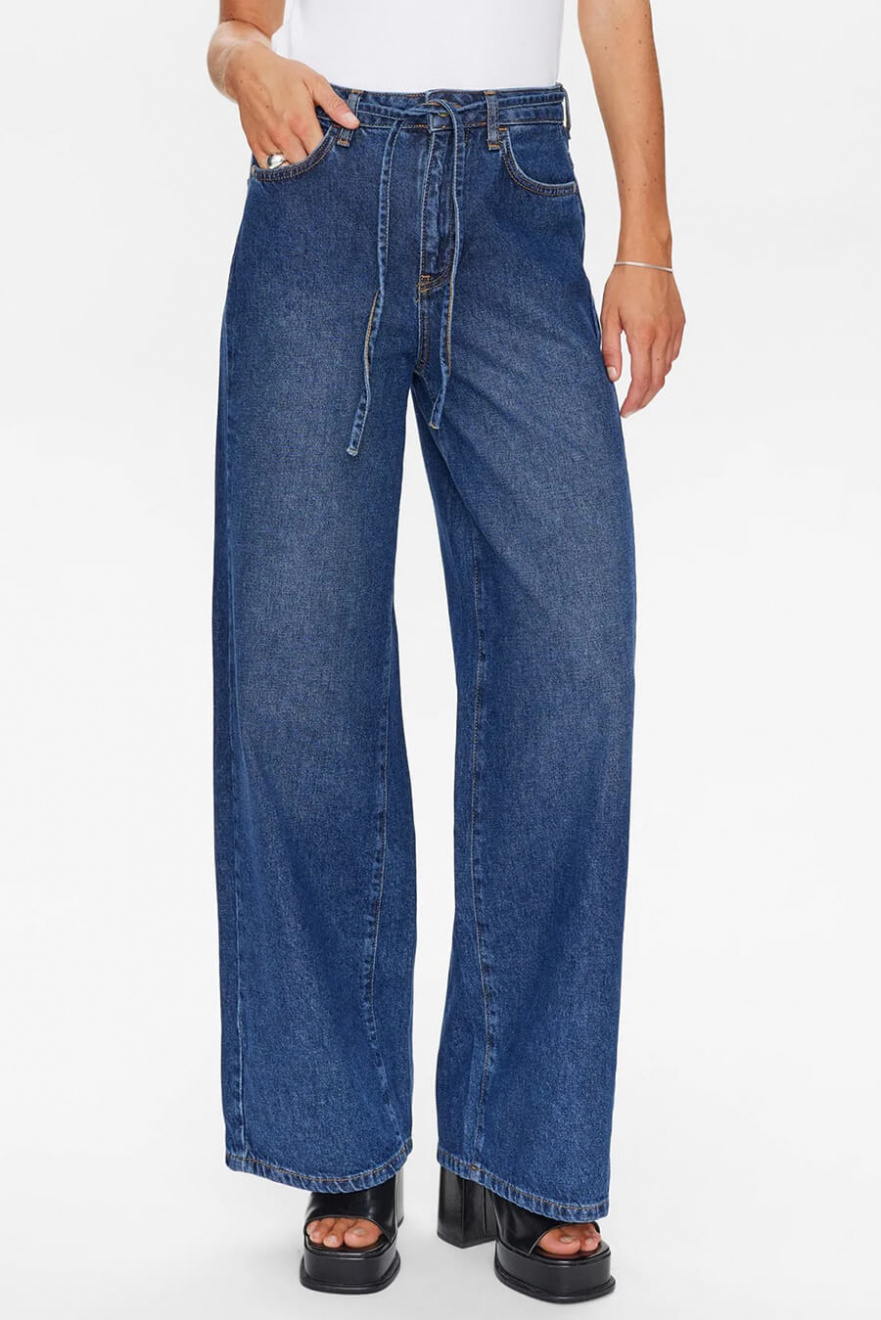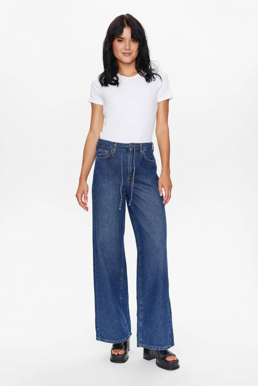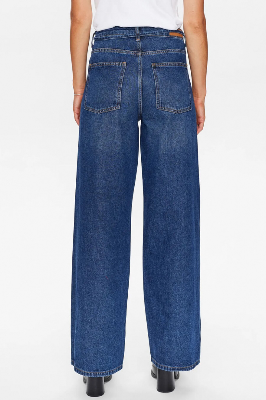 These wide leg jeans combine a modern silhouette with a classic denim look. Perfect for those who want both comfort and style! Update your wardrobe with a pair of jeans that stand out.Soft jeans in cotton with mid waist, wide leg, matching belt at the waist, full length, forward turned side seams from Nümph.
