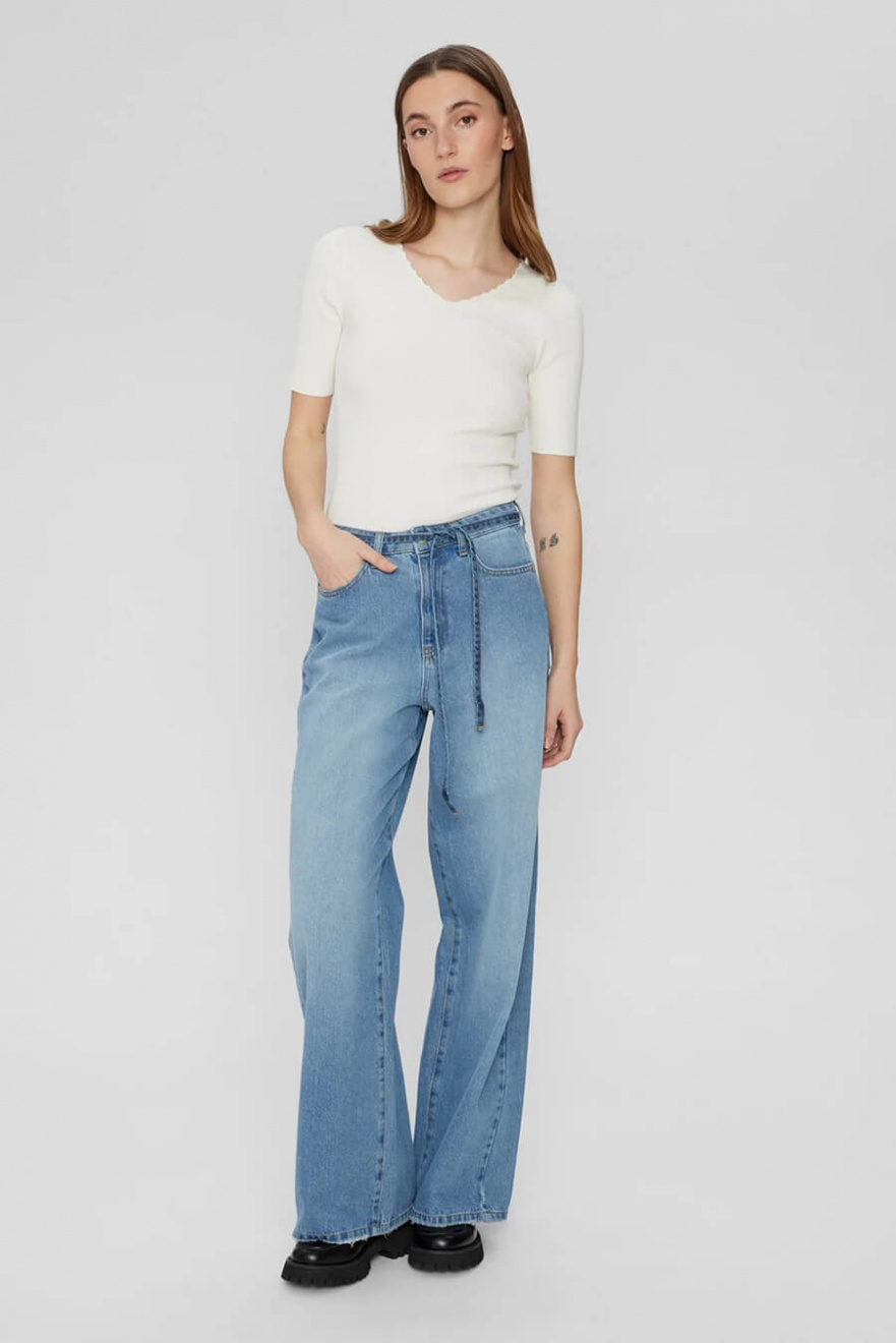 Light jeans with a perfect wide fit, sweeping legs and a matching waist belt that ties the look together. Just as stylish with a simple t-shirt as with a sharp shirt. A pair of jeans that does the job!Jeans in cotton with wide legs, high waist, matching belt and loose fit from Nümph.