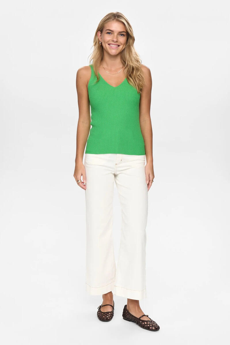 The ribbed V-neck tank top is just what your wardrobe is missing. Fresh, classic and just as stylish with tailored clothes as it is with vintage jeans. When simple elegance is all that is needed.Ribbknitted tank top in a viscose blend with slim fit, stretch, wide shoulder straps, v-neckline front and back from Nümph.