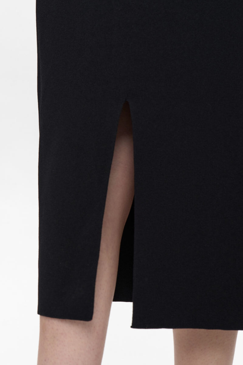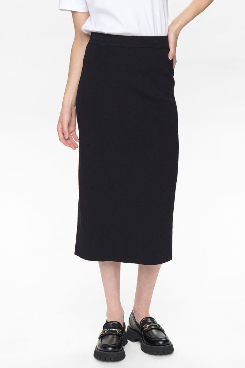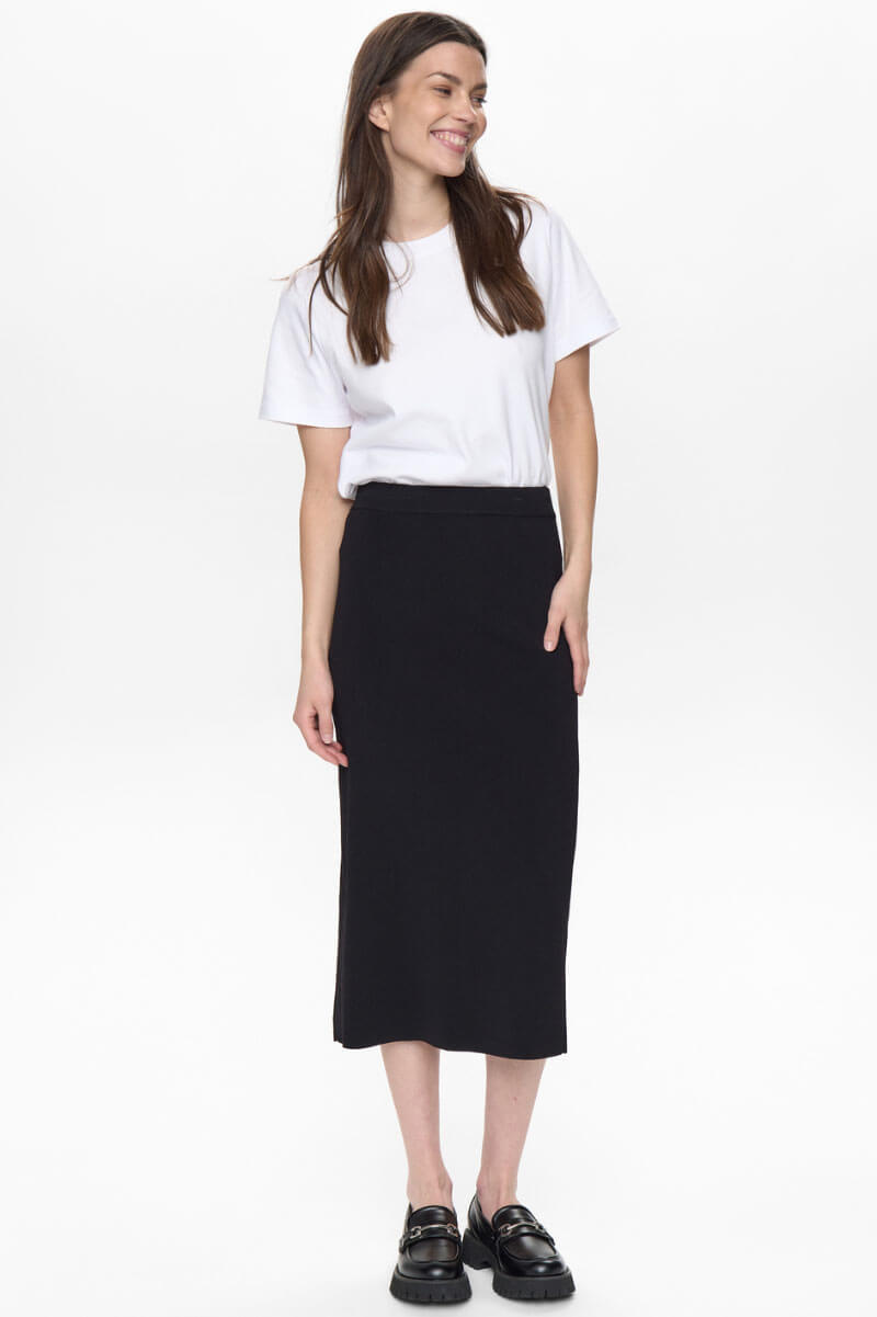 A sleek and versatile knitted midi skirt with a straight silhouette. Crafted from a soft, stretchy fabric, it offers both comfort and a flattering fit. Perfect to style with knit tops, blouses, or a blazer for an elegant everyday or office look.Knitted midi skirt with a straight fit in stretchy material from Nümph.