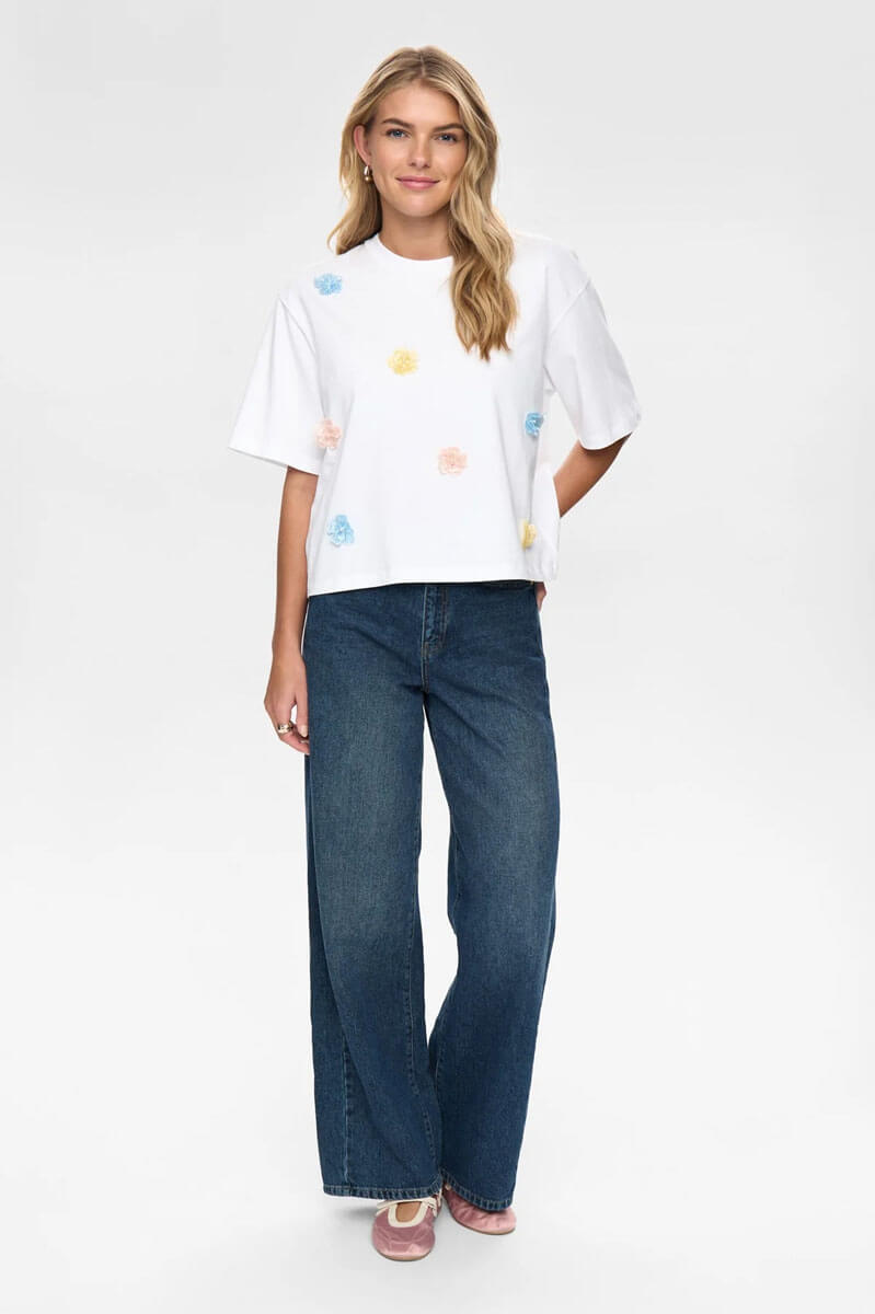 Nümph Nufleura top, feminine cotton top with floral details.