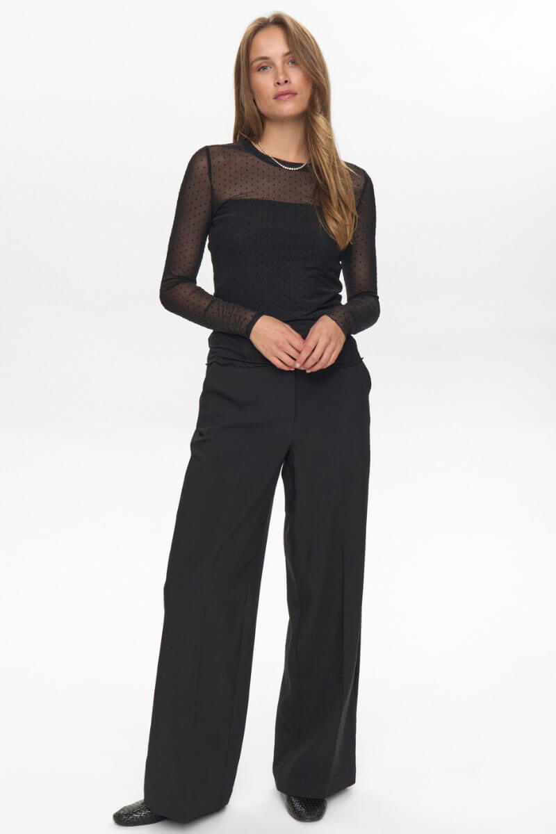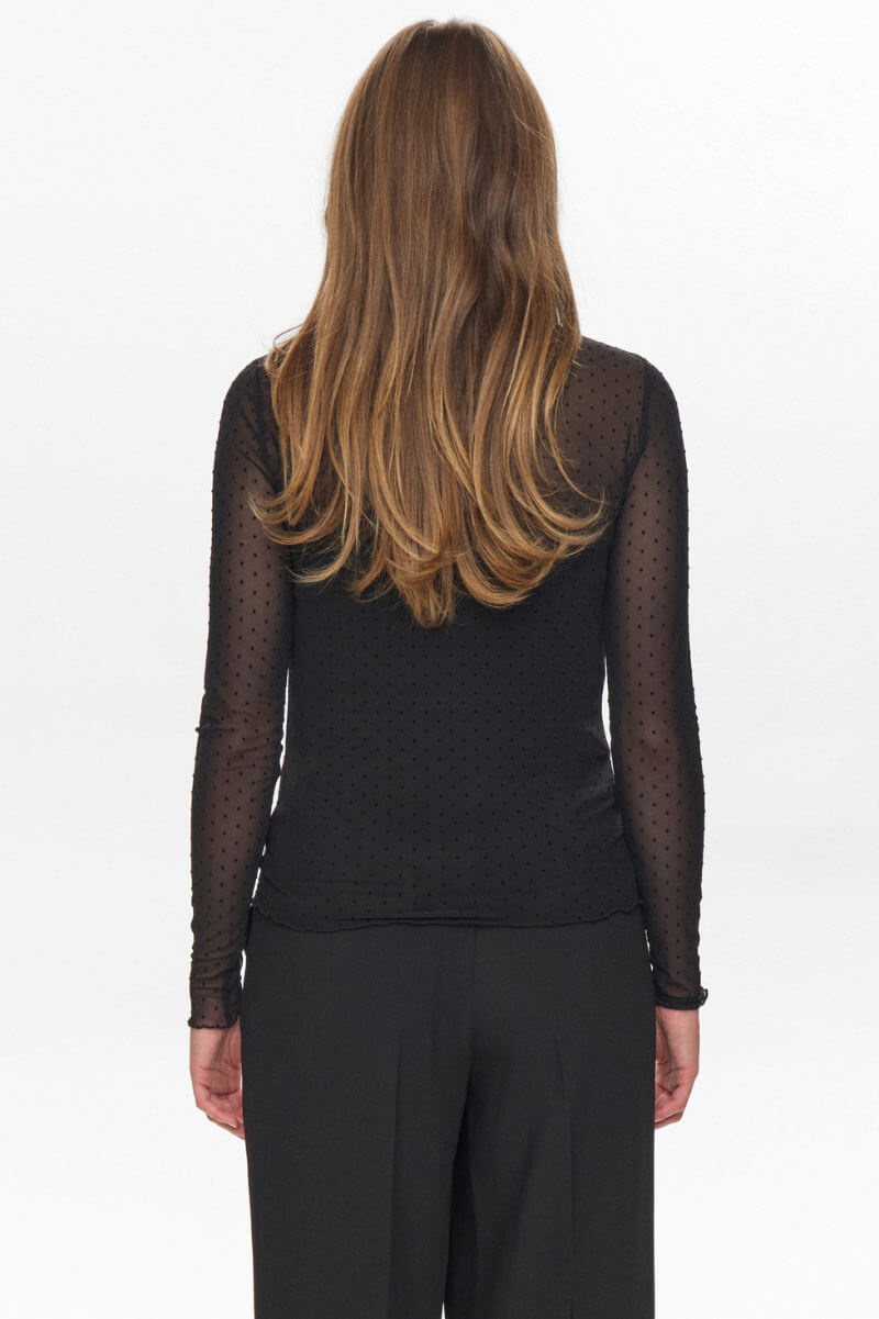 Let your style speak through an elegant, sheer top that radiates both confidence and lightness. The soft, flowing fabric drapes beautifully, creating a feminine silhouette that’s perfect for both workdays and evening occasions. Wear it on its own for a sleek, modern look or pair it with a skirt for a more dressed-up expression.