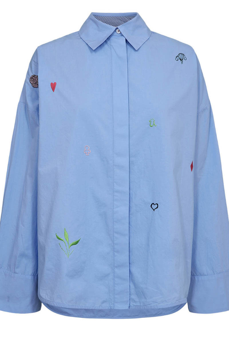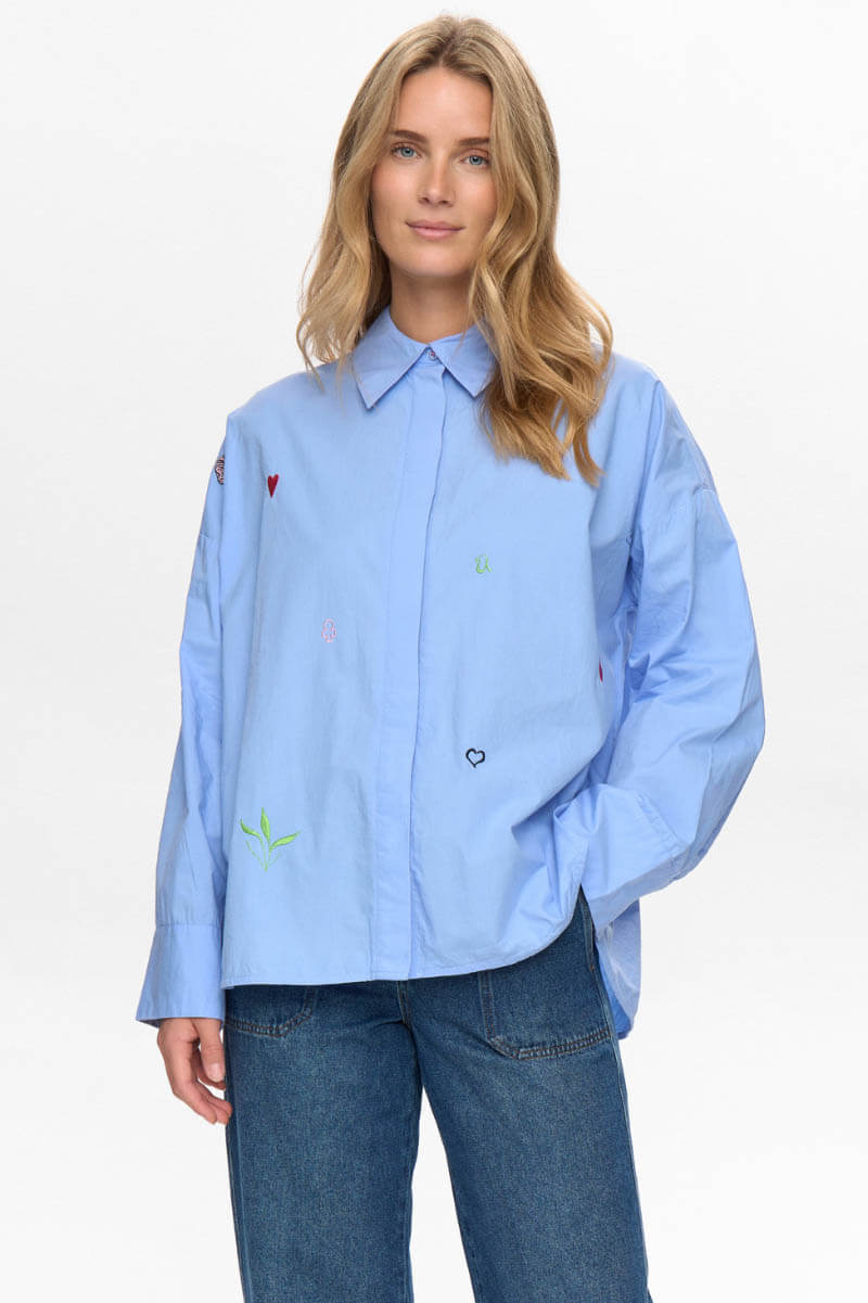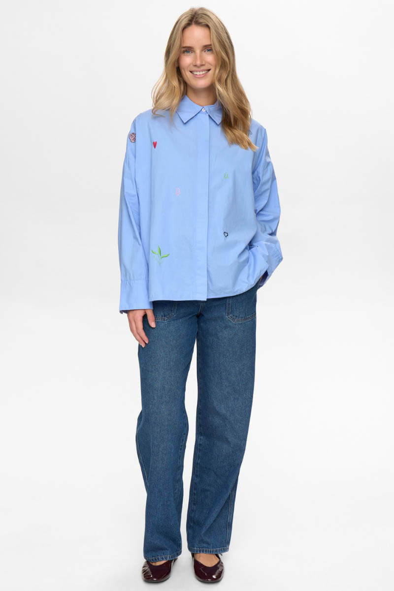 Shirt in a blue hue with decorative embroidery from Nümph.- True to size, relaxed fit