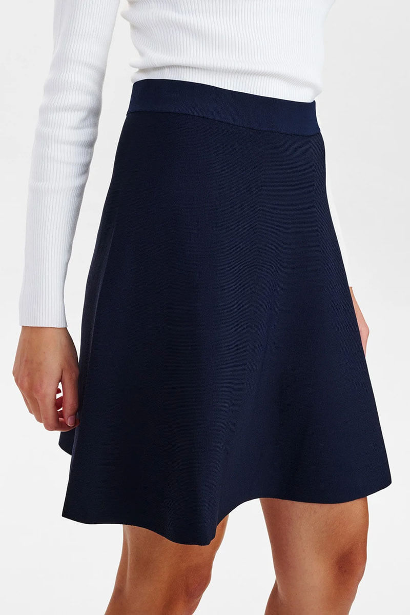 This black skirt with its beautiful fall and flattering fit gives it both freedom of movement and elegance. Perfect for both work and festive occasions!Short knitted skirt in a viscoseblend with A-shape and elastic waistband from Nümph.