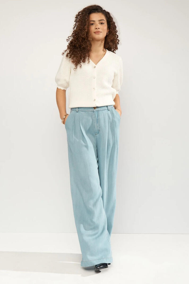 A classic, the white cardigan here in a more feminine model.A soft, lovely kofta that you can wear as it is or over a blouse. Nice with a shorter sleeve and a little puff on the shoulder. Pearl buttons on the front. Normal in size.