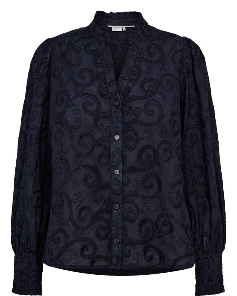 A blouse with a tone-on-tone embroidered pattern reminiscent of delicate branches. The blouse features a V-neckline with decorative front buttons and sleeves finished with cuffs. Style it with either a skirt or trousers — the perfect everyday blouse.Blouse in cotton with embroidered pattern and V-neck with front buttons.