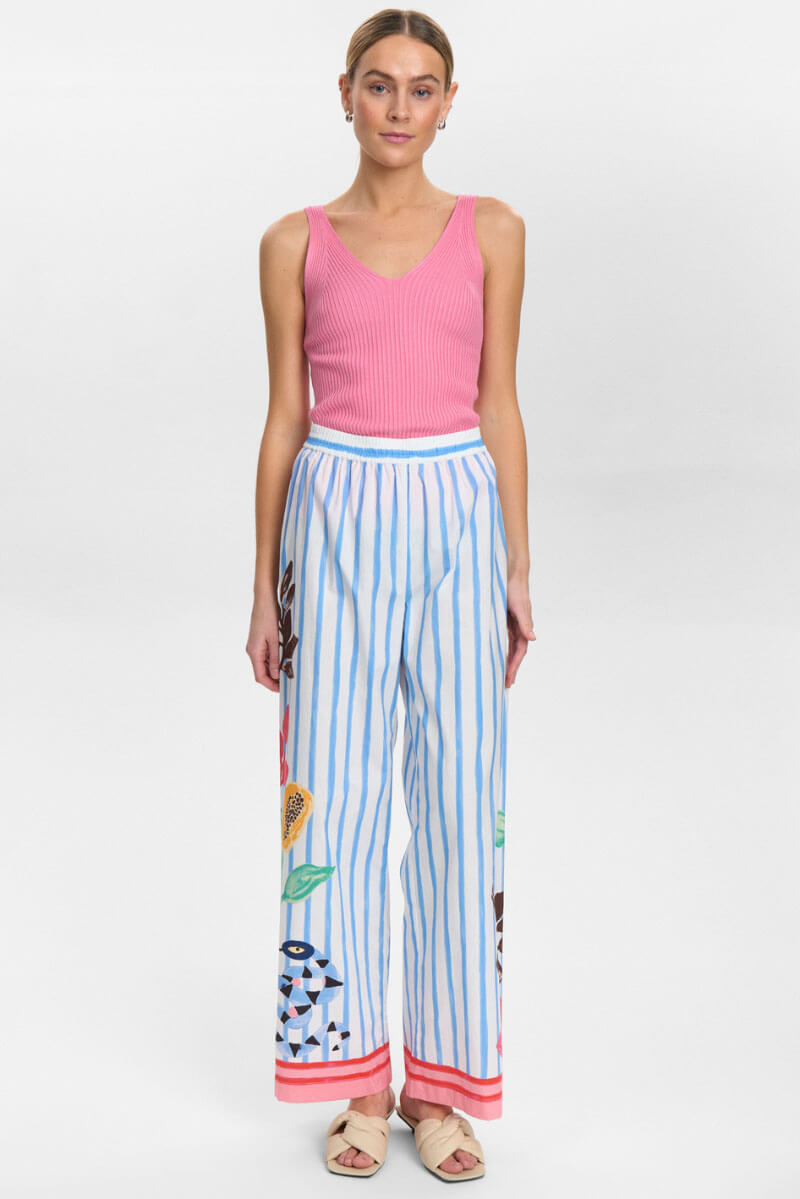 Pops of color meet form in these easy-to-wear cotton trousers. Perfect for sunny days when you want to feel both relaxed and sophisticated. Pair with a simple top – or wear a set for maximum effect.Patterned trousers in cotton with elastic waistband, pockets at the sides, high waist and wide legs from Nümph.