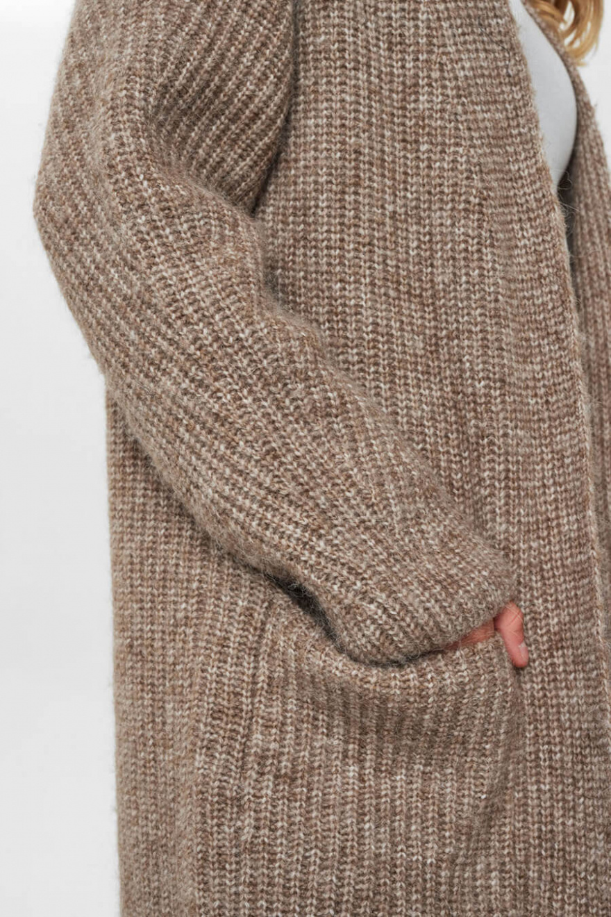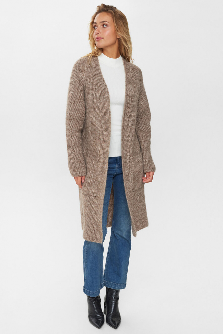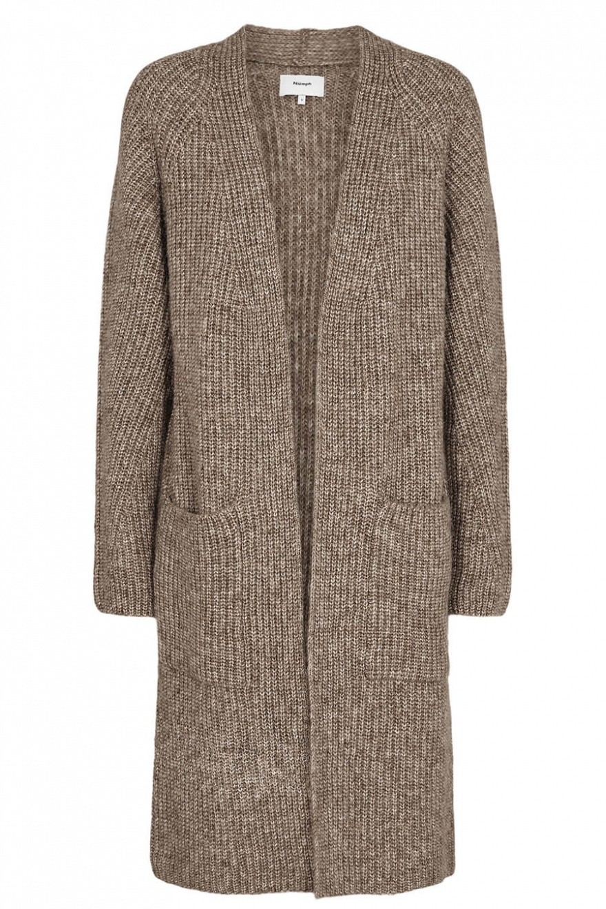 This cozy, long-sleeved cardigan is perfect for layering on cooler days. The ribbed design provides both structure and comfort, while the pockets add functionality. A versatile garment that easily combines with both jeans and dresses!Knitted soft cardigan in a open model with pockets front, relaxed fit and raglan sleeves from Nümph.