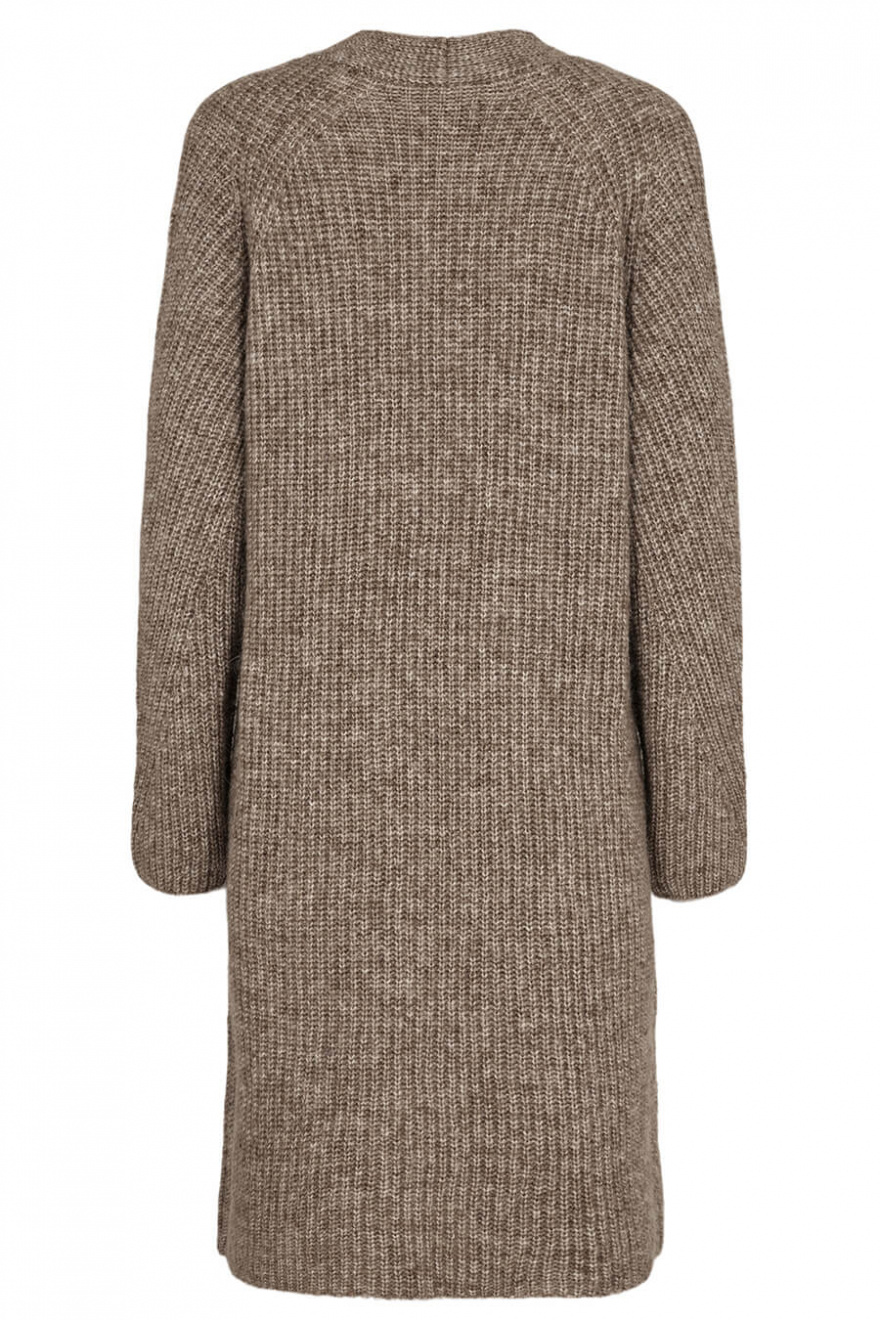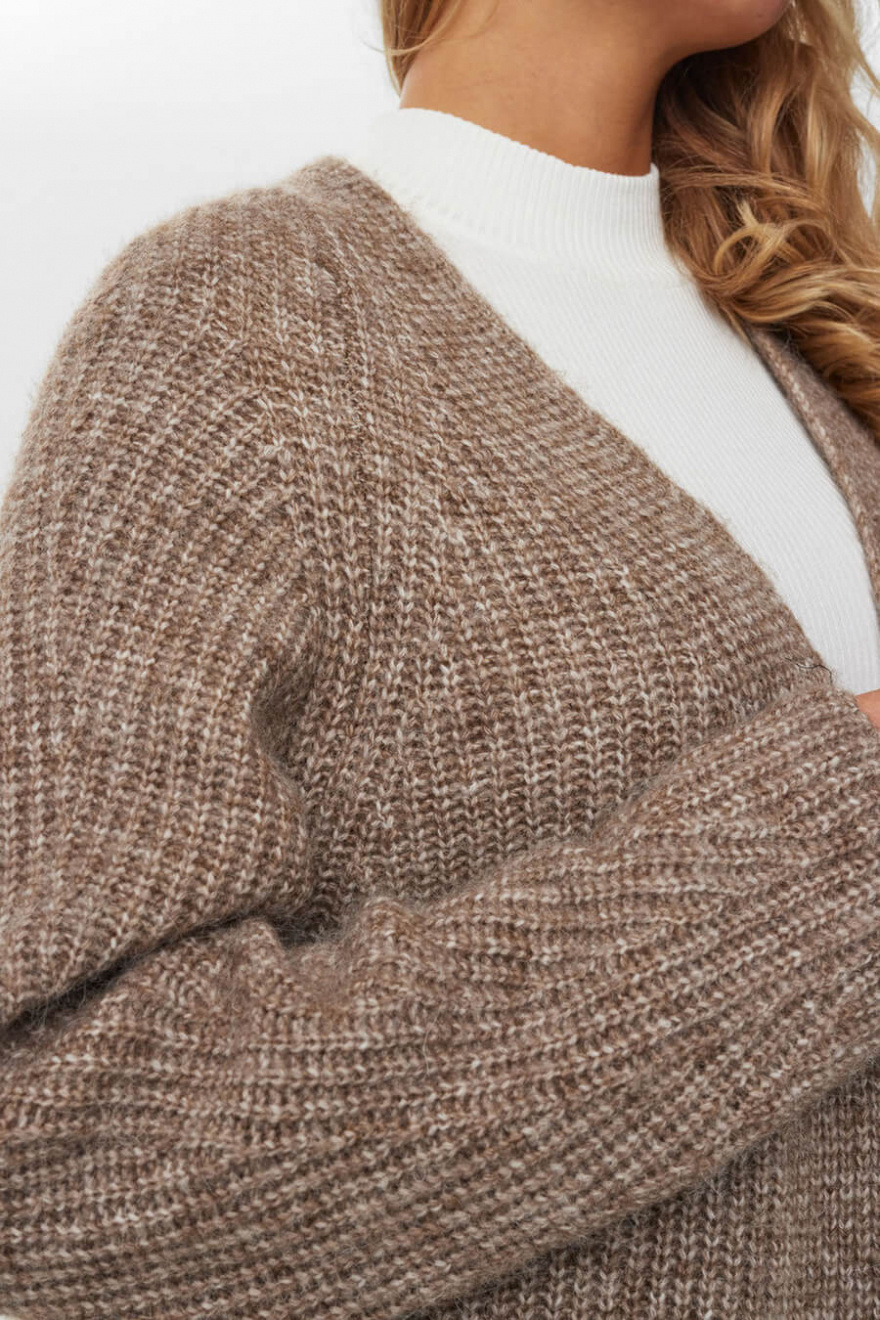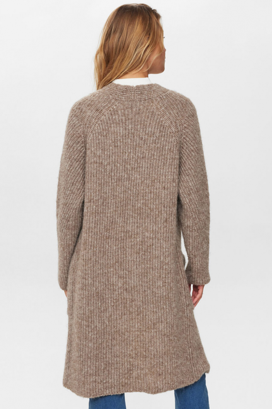 This cozy, long-sleeved cardigan is perfect for layering on cooler days. The ribbed design provides both structure and comfort, while the pockets add functionality. A versatile garment that easily combines with both jeans and dresses!Knitted soft cardigan in a open model with pockets front, relaxed fit and raglan sleeves from Nümph.