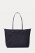 The dark blue nylon handbag with black details and gold accents combines smart function with stylish design. Easy to carry, generous in size and always up to date.Medium tote bag in nylon with double handles, closes with a zipper, logo front and one innerpocket with a zipper from Lauren Ralph Lauren.