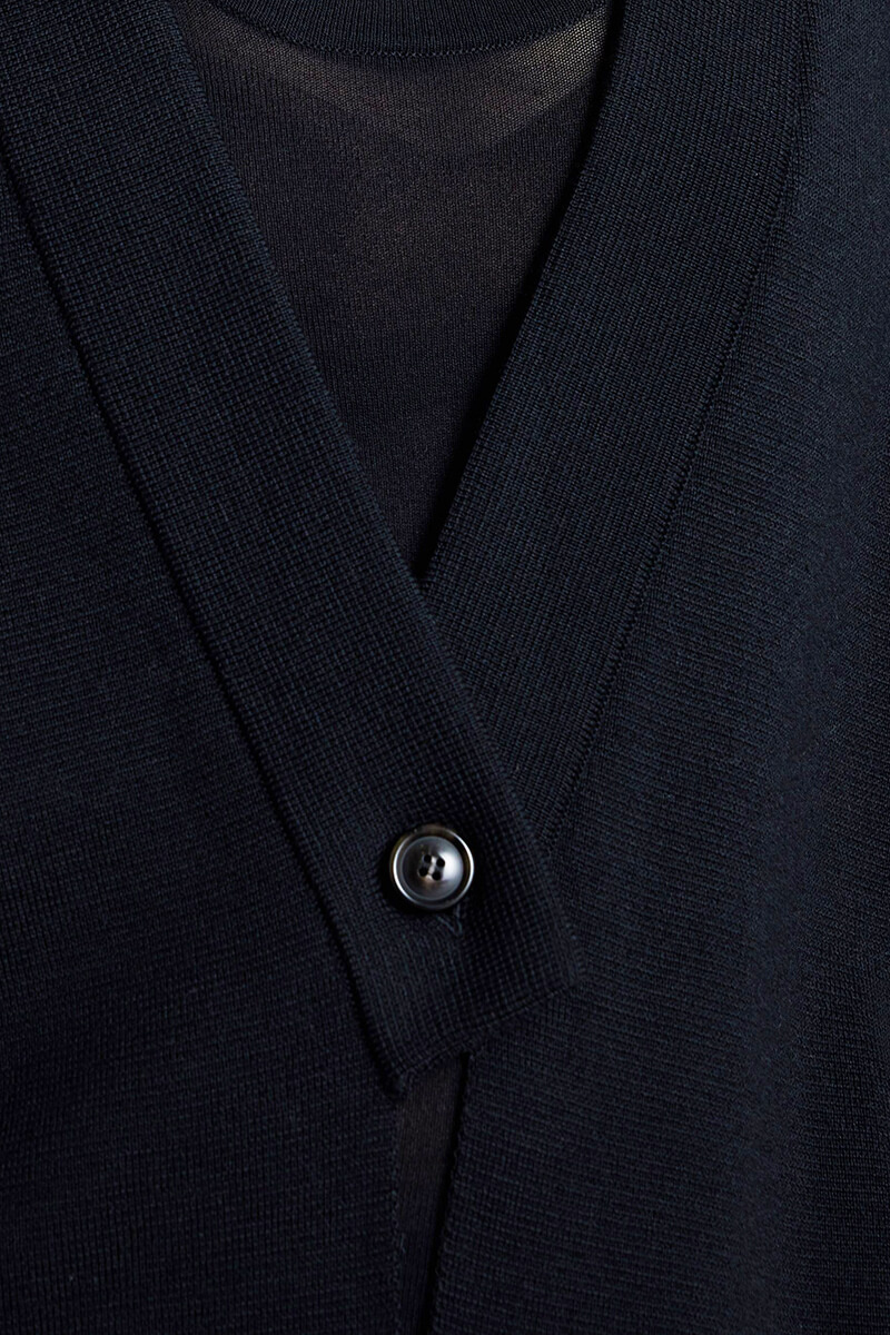 A cardigan with a loose fit and a button closure at the front. Perfect for the office or with jeans in everyday life.With a blouse underneath and suit trousers it becomes more dressed up. Loose fit and full length sleeves. One button at the front and v-neck.