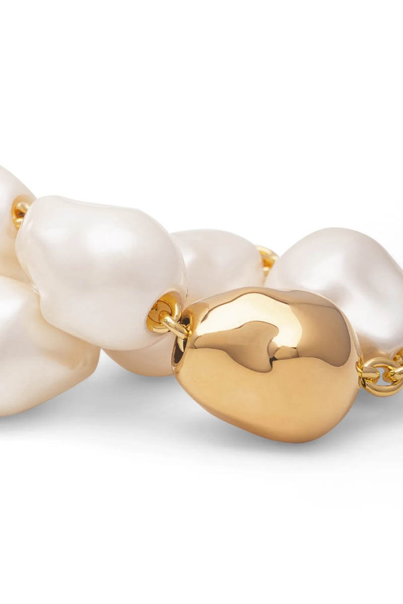 The Organic Pearl Bracelet enchants with its elegant expression and organically shaped pearls that rest gracefully around the wrist. The natural shape gives the bracelet a timeless beauty, while the matching chain is perfectly balanced to complete the harmonious look.