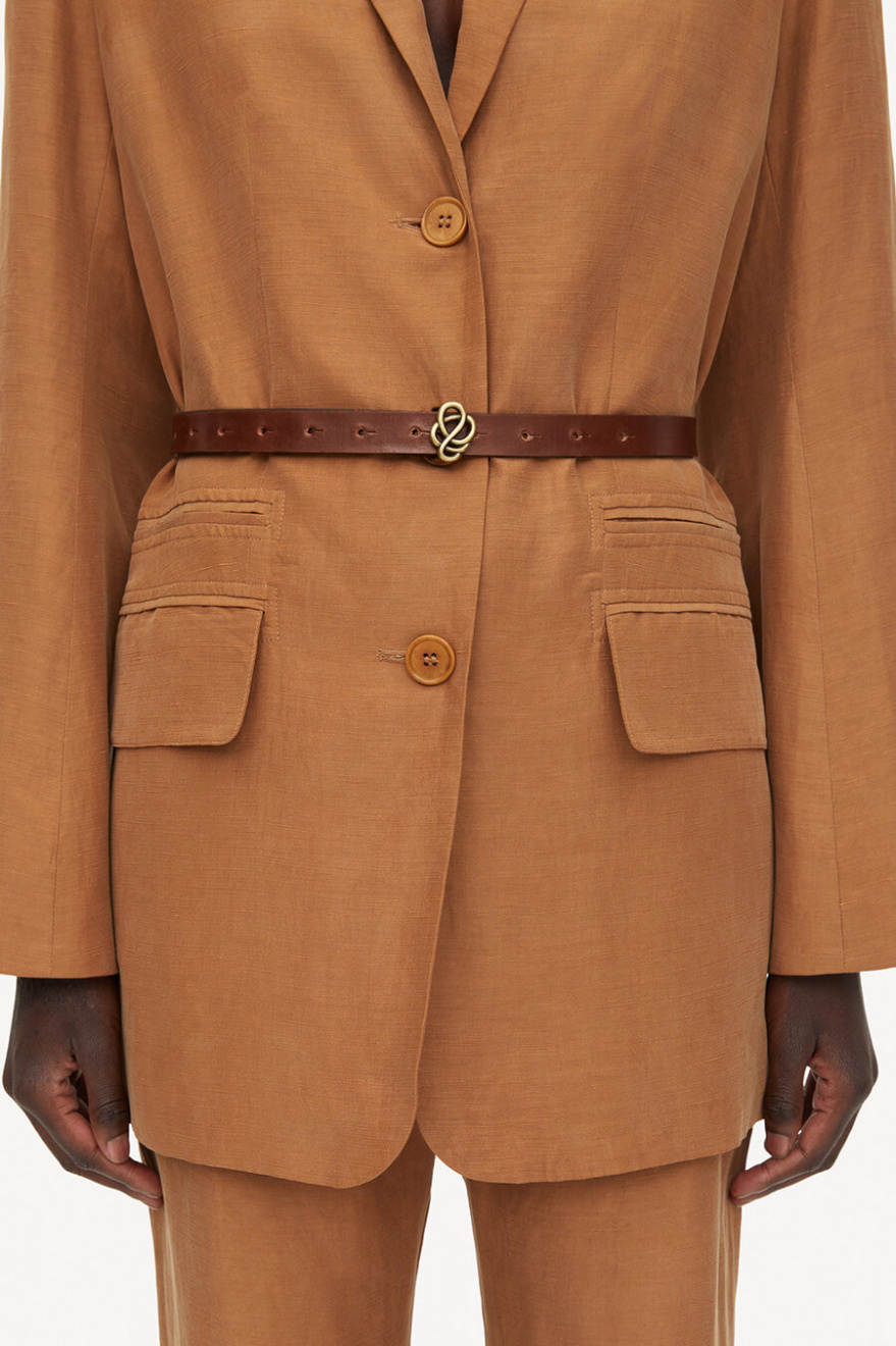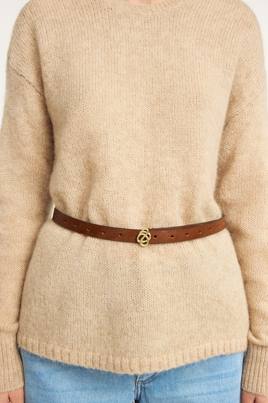 The belt is made from smooth, supple leather to sit comfortably around the waist. Slip it through the loops of your favourite trousers or around the waist of a dress.