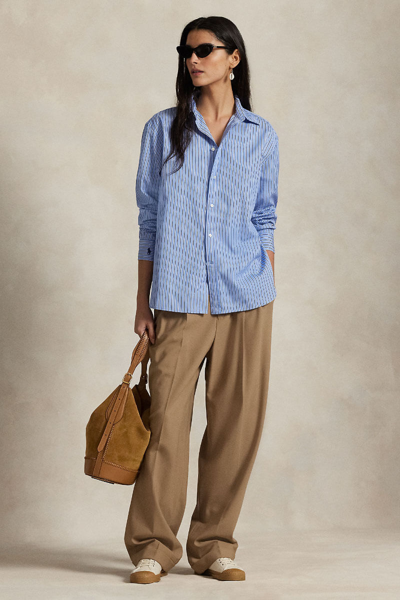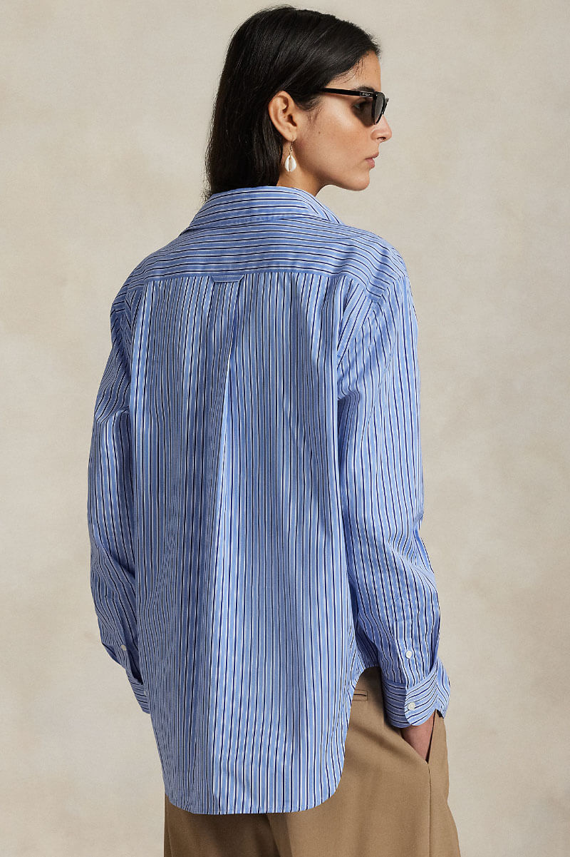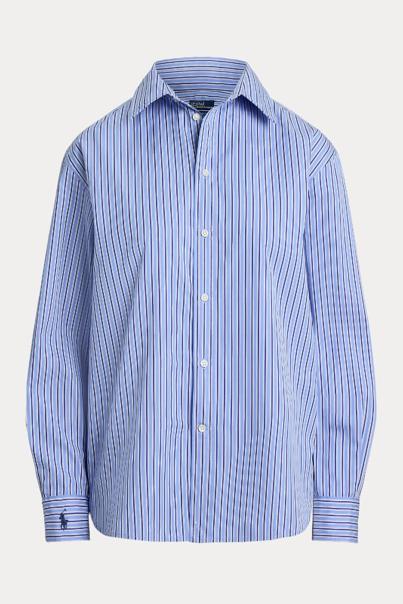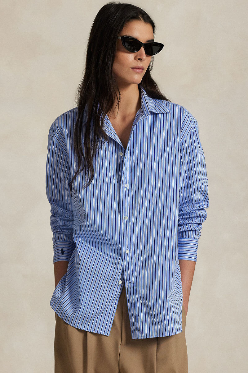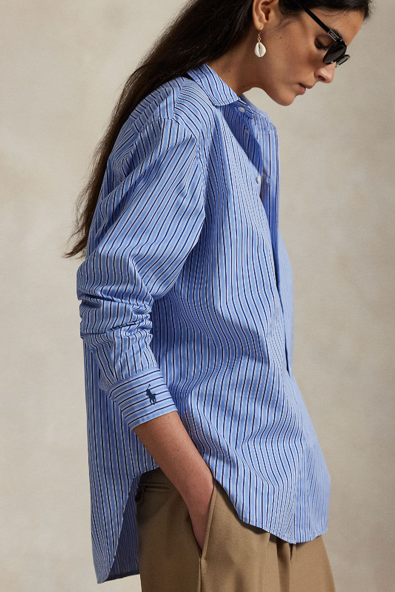 The classic cotton shirt in blue and white stripes is a timeless favorite - casually elegant and perfect for any occasion. A shirt you wear now and always. Style with shorts in the summer and with suit pants on cooler days.Striped shirt in soft cotton with an oversized fit, dropped shoulder seams, rounded side slits, collar, button closure at the front and small embroidered logo at the cuffs from Polo Ralph Lauren.