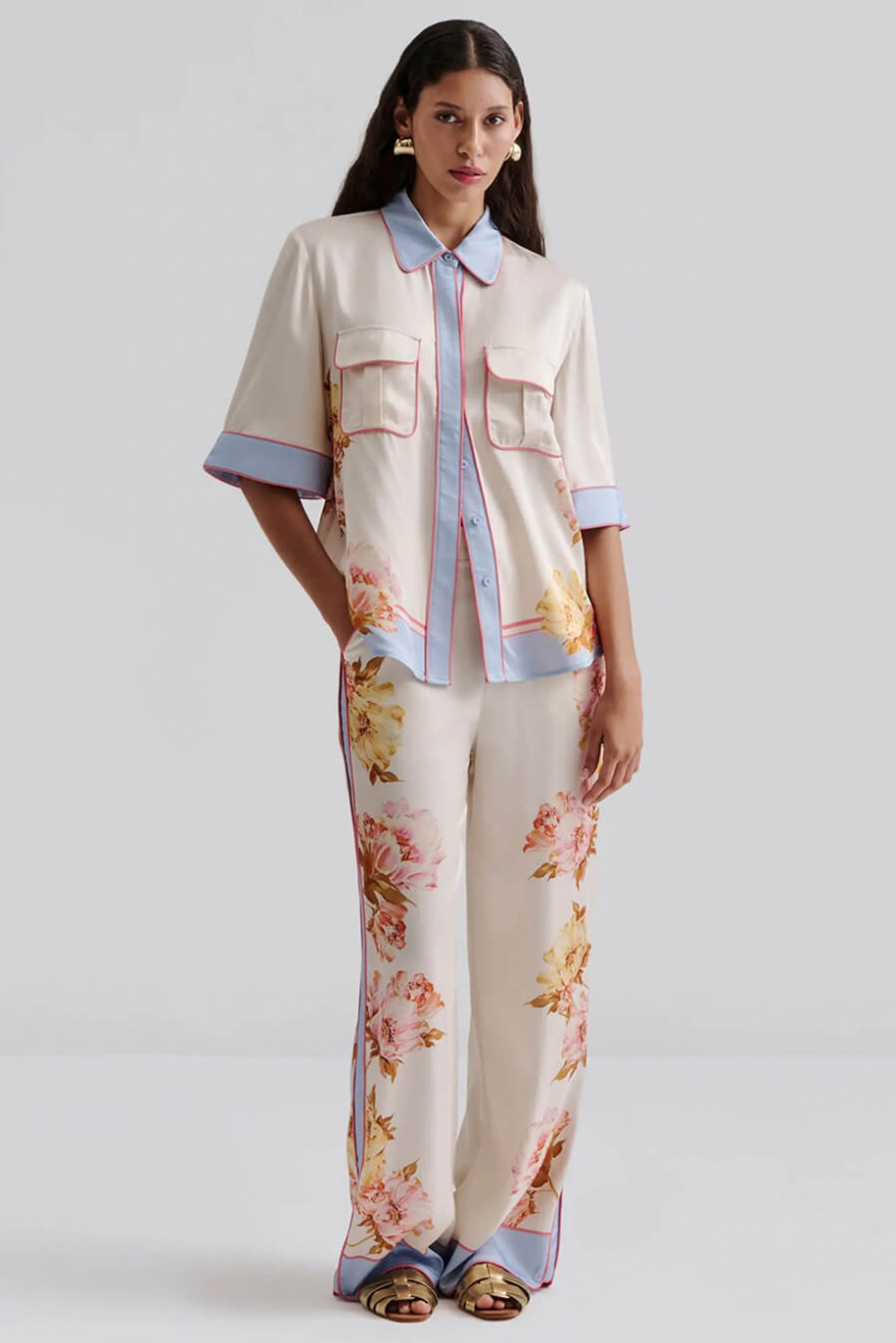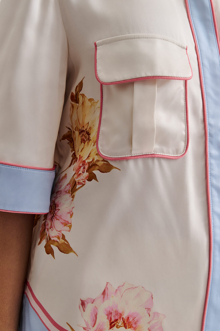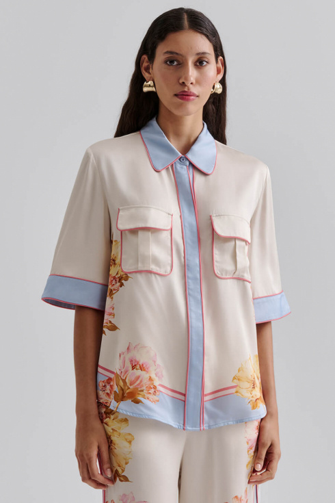 Pam Short Sleeve Satin Shirt, Cream Peony