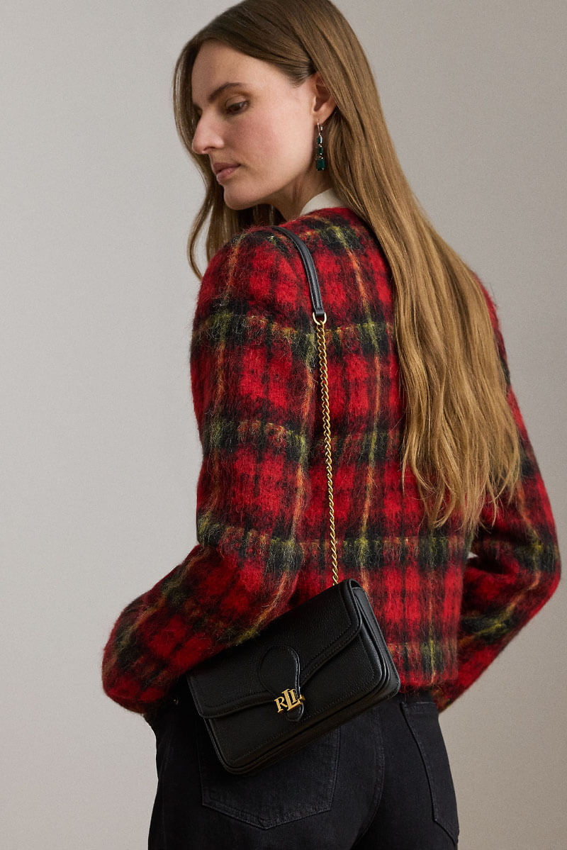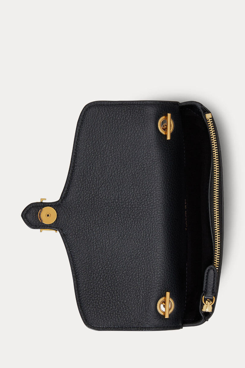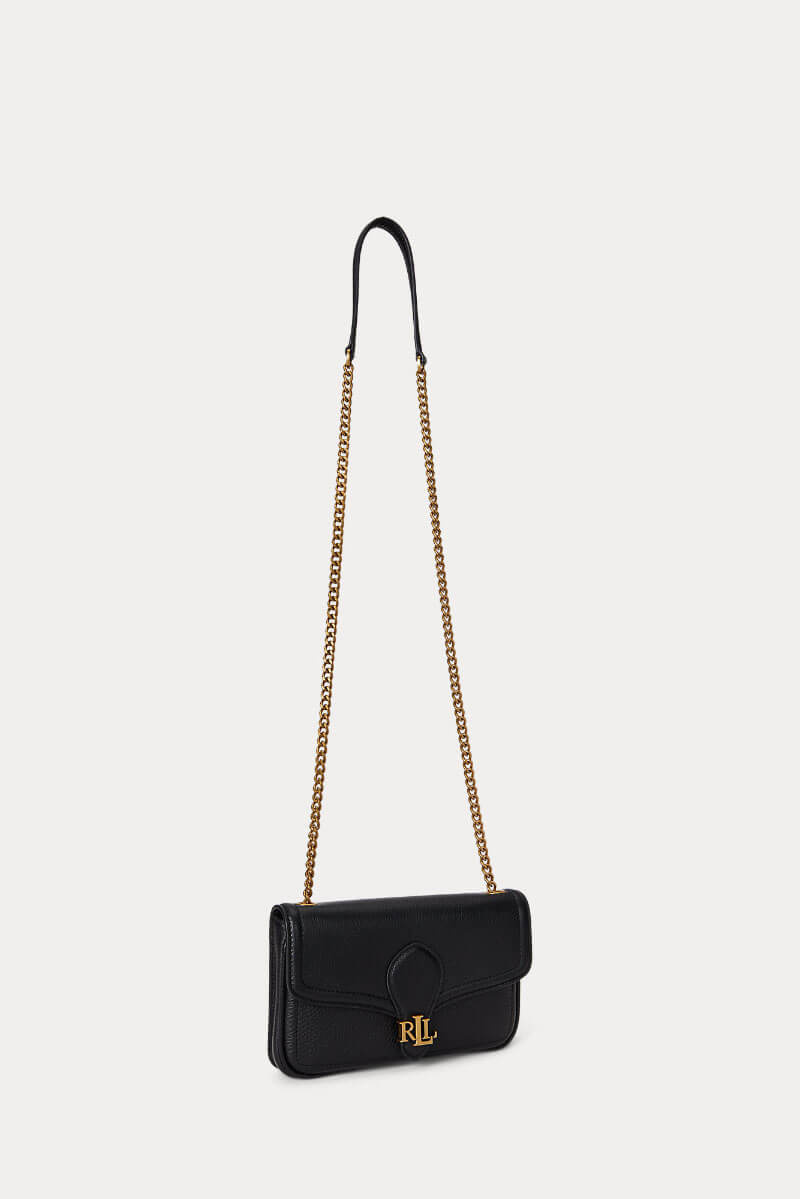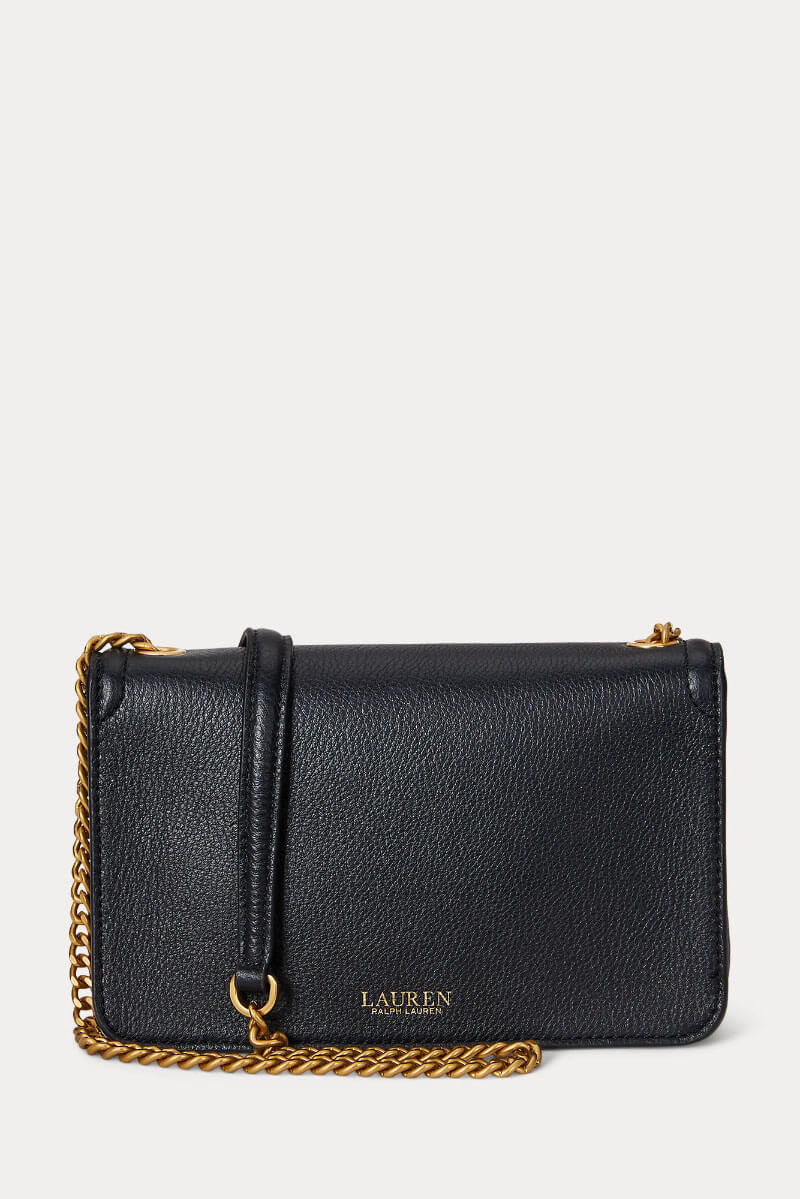 Black leather bag with chain strap and gold details - a sophisticated accent that elevates any outfit. Wear it crossbody with a knit dress for daytime, or over the shoulder with a suit and heels for an elegant evening look with understated luxury.Small handbag in soft leather with a removable shoulder strap, inner pocket with zipper and closed with a flap from Lauren Ralph Lauren.