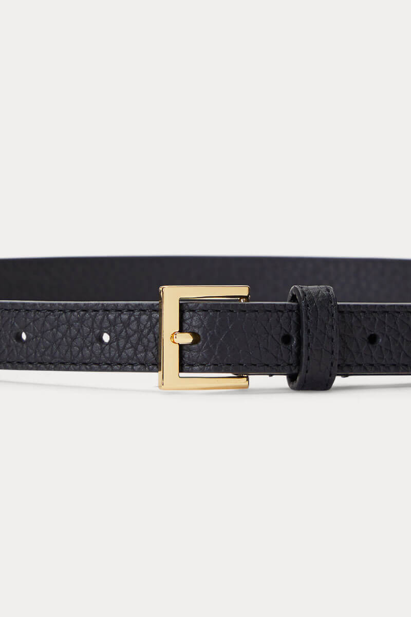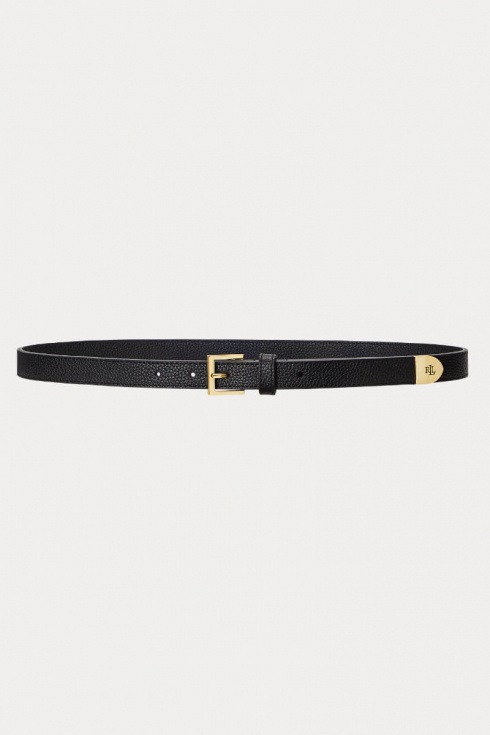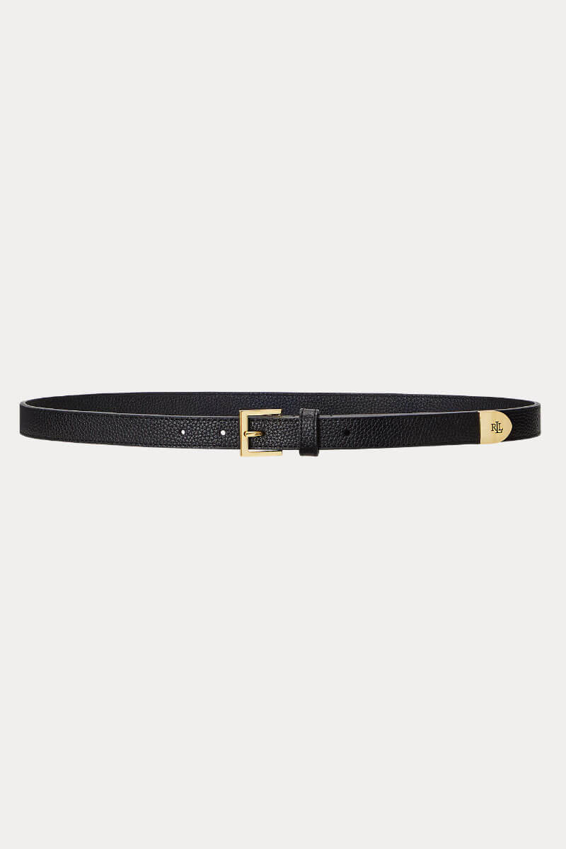 Leather belt with gold buckle and logo from Lauren Ralph Lauren.- 100% Cow leather