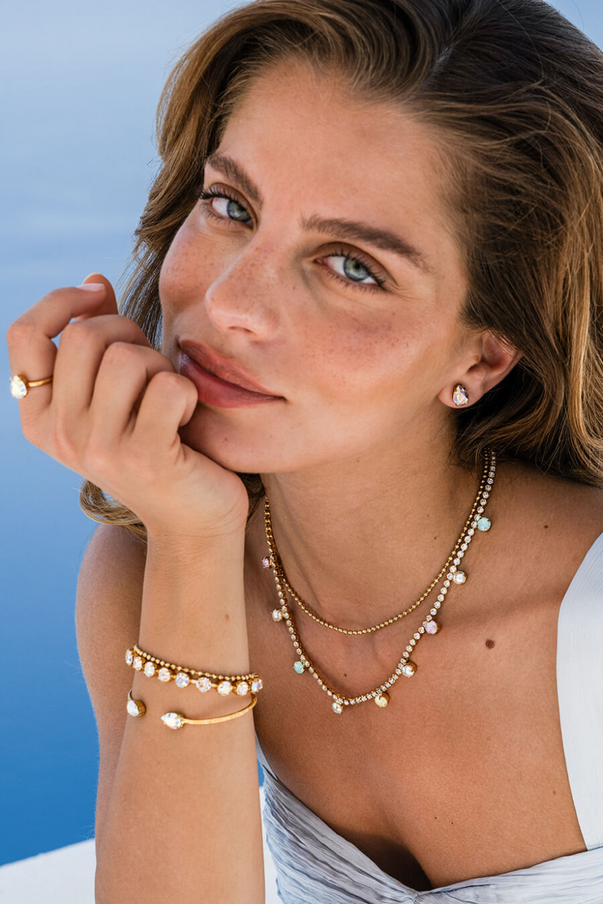 Petite Drop Stud Earrings, Gold & Aurore Boreale