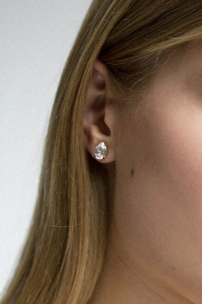Petite Drop Stud Earrings, Gold & Crystal