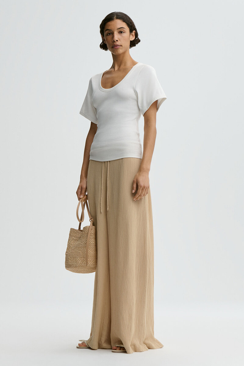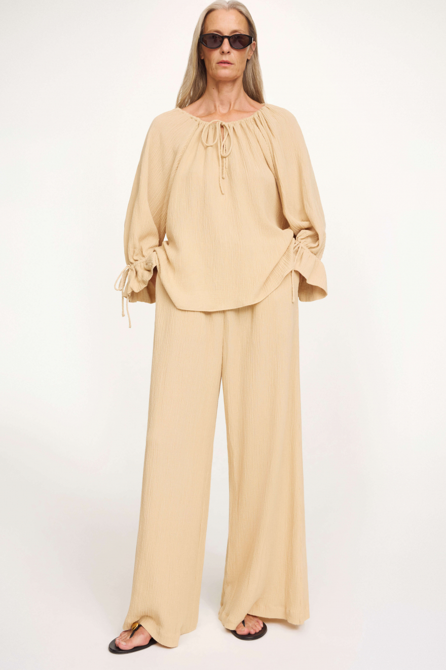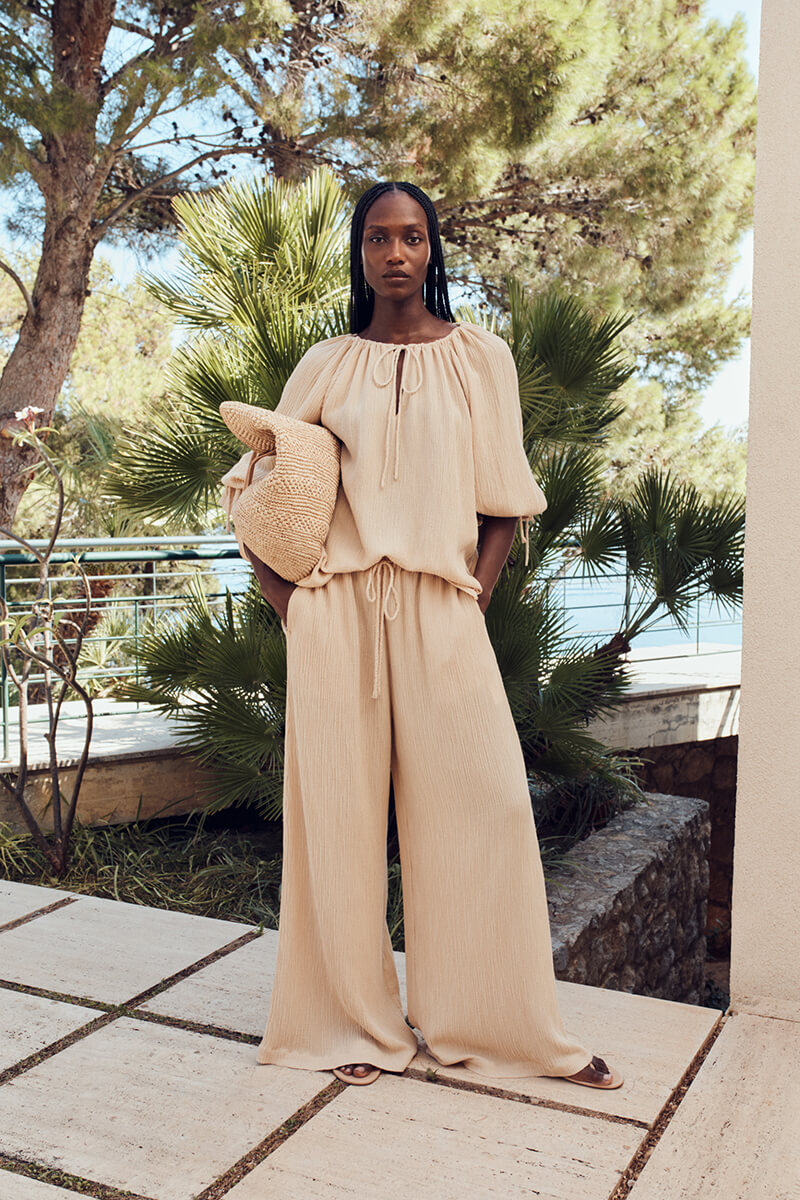 There’s nothing quite like a pair of relaxed trousers on warm spring days – such as the Pisca Weave design. Set on a high elastic waist, the wide-leg design is as easy to style, as it is to wear. Pair with the matching Rose Weave blouse.