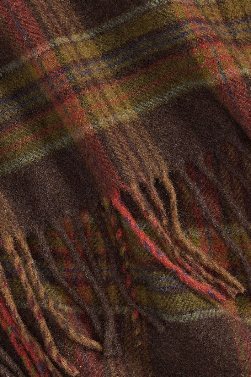 Plaid Fringe Wool-Cashmere Scarf, Brown Multi