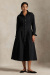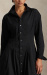 Point collar. Buttoned placket. Shell buttons.Long sleeves with buttoned barrel cuffs. Dropped shoulders. Side on-seam pockets. Pleats at the front and back waist.