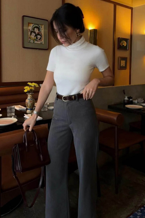 A sleek and versatile turtleneck that works just as well for everyday wear as for more dressed-up occasions. With its short sleeves and slim silhouette, it’s perfect worn on its own or layered under blazers and cardigans for a more polished look.
