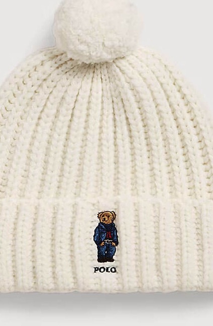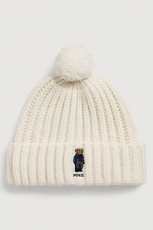 Polo Bear Rib Pom-Pom Beanie, Cream