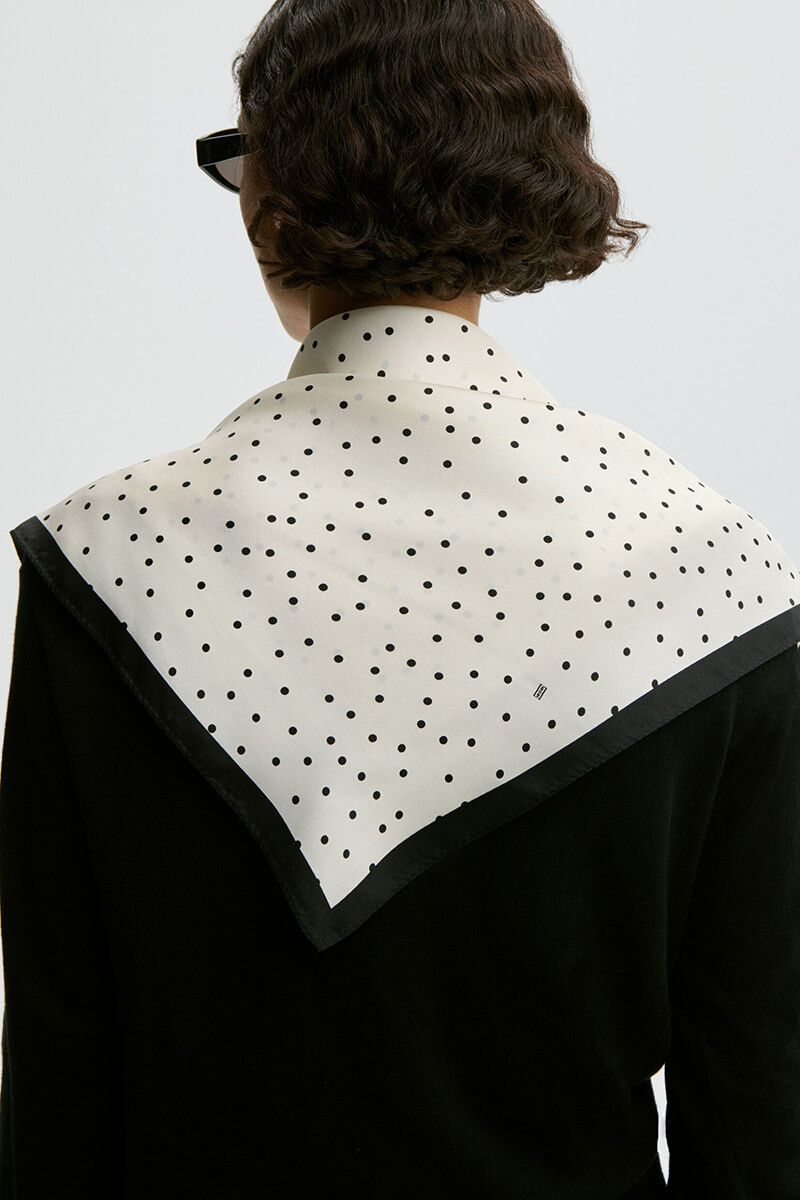 Add a graphic element to your edit, courtesy of the Poula scarf. Made in a luxe silk – adorned with playful polka dots – the design is endlessly versatile: Tie it around your neck, your wrist, or the handle of your handbag.