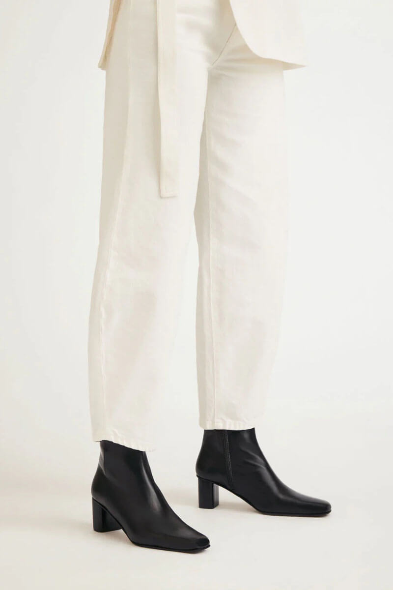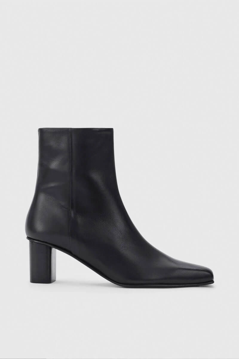 Black leather boots with a heel and a pointed square toe – a natural partner for this season's looks. Combine with tailored trousers and a cashmere sweater for daytime, or wear with a midi dress and long coat for evening elegance.Ankle boots in soft leather with zipper on the side, thick heel and square toe from ATP Atelier.