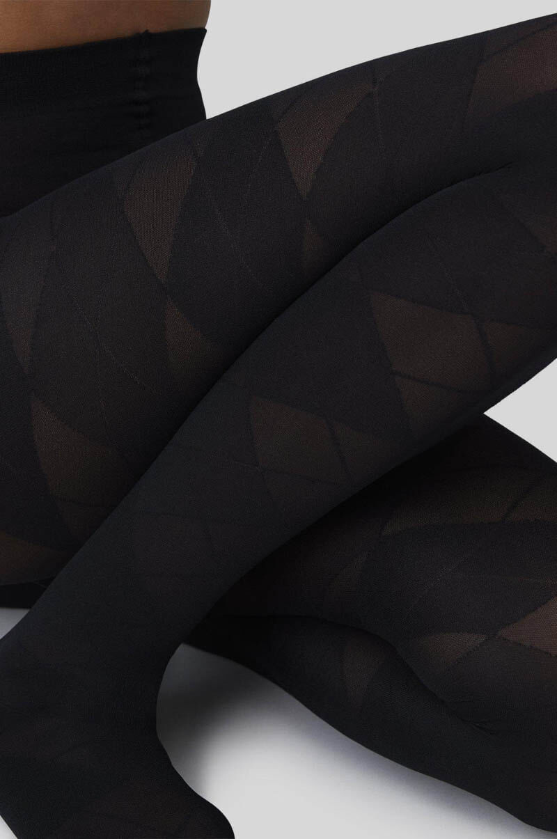 Rebecka Argyle Tights are a pair of 50 denier tights with a playful twist, featuring a subtle argyle pattern that adds just the right amount of attitude to any look.50 denier tights with a semi-sheer finish, soft waistband, flat seams, and toe reinforcement. Knitted from recycled yarn.