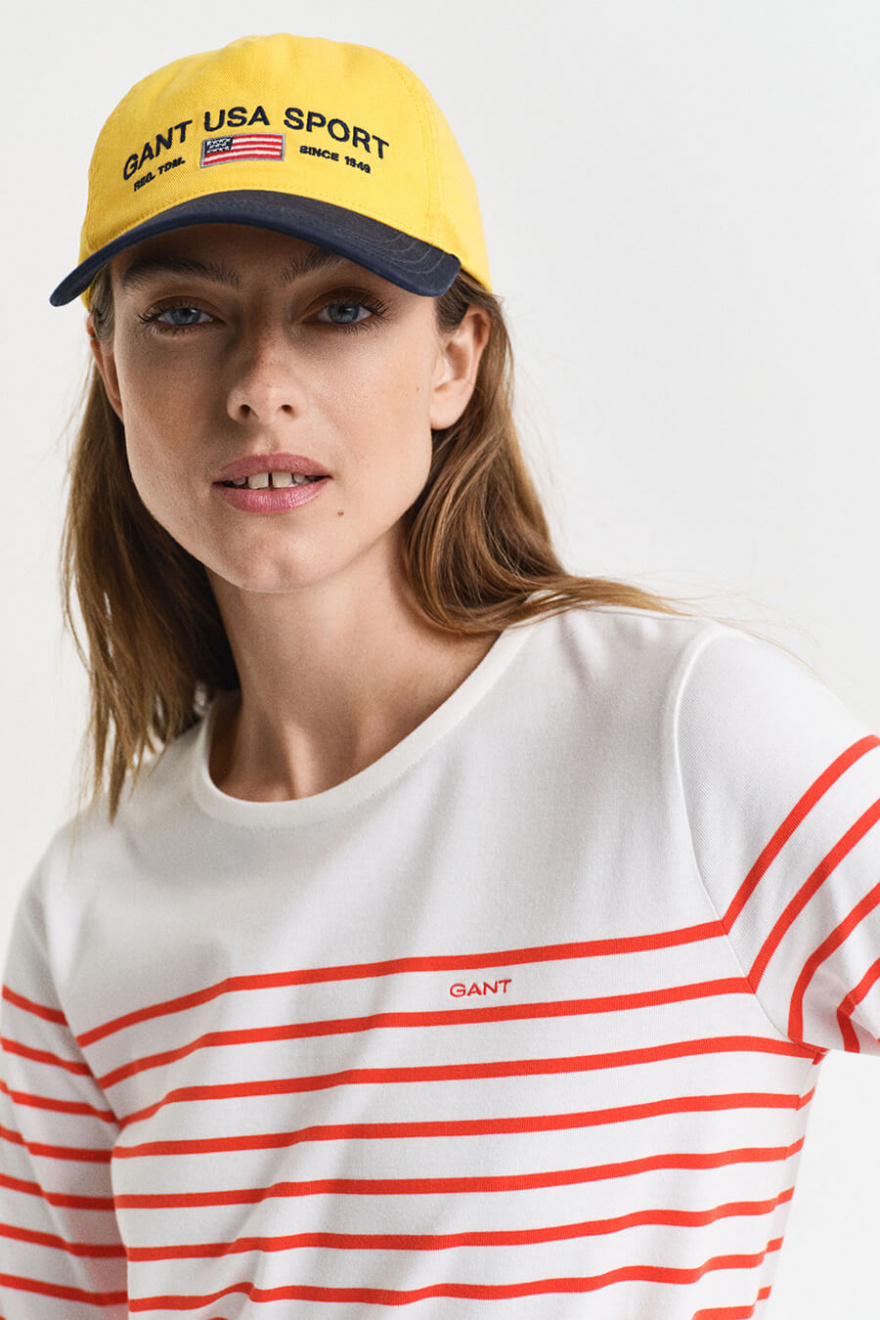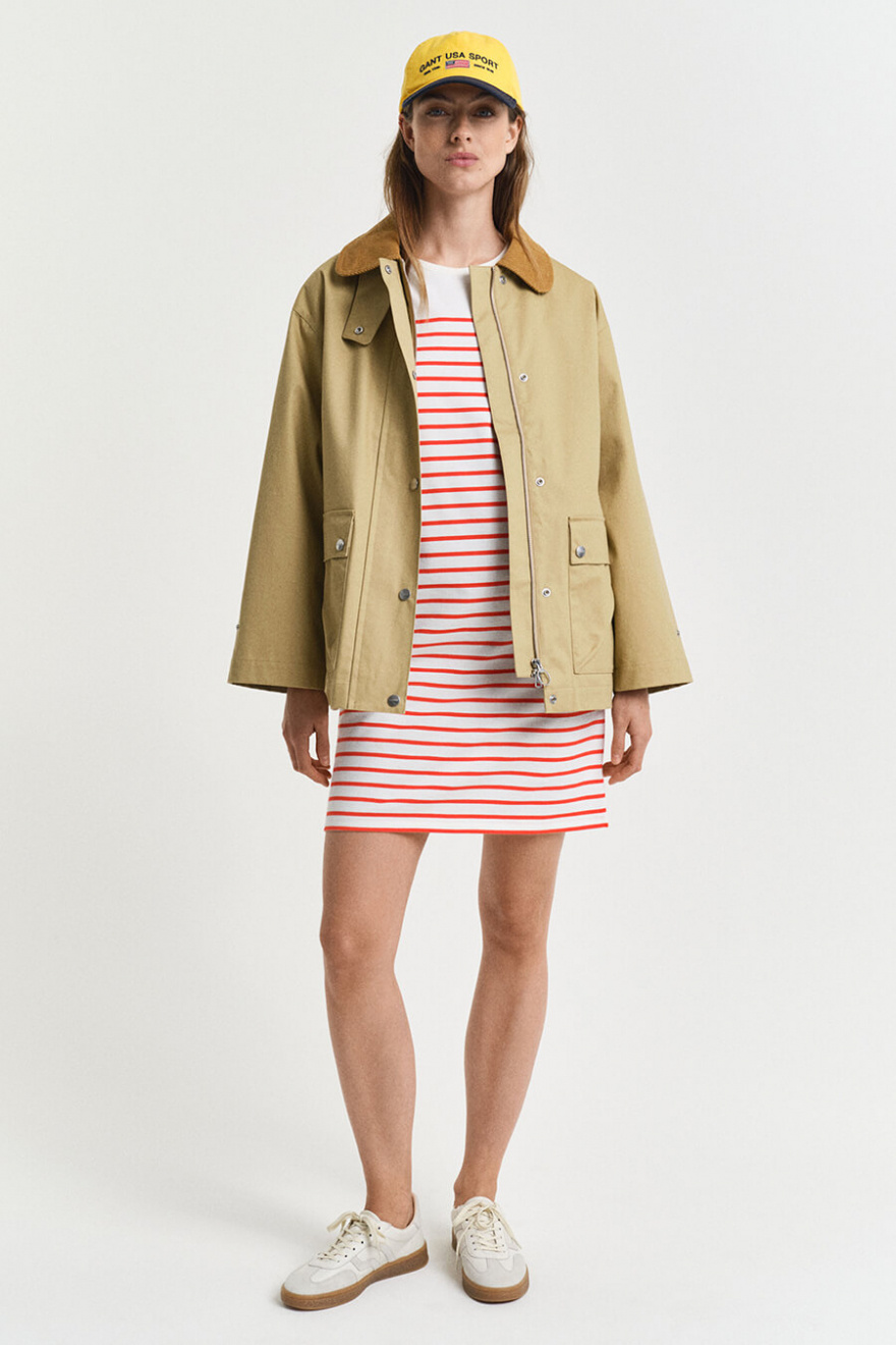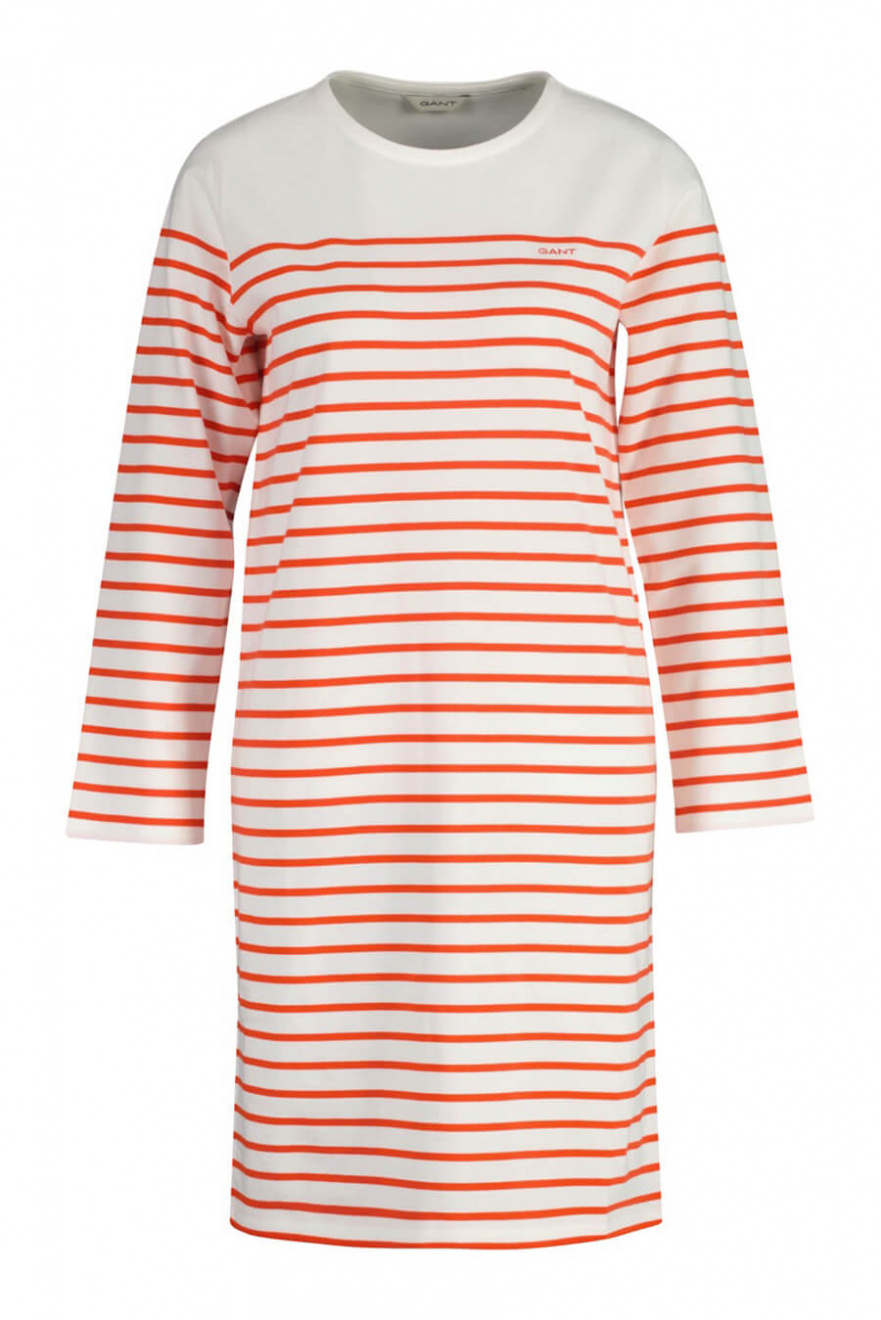 This striped dress in a maritime style is a timeless wardrobe classic. With a relaxed fit and 3/4 sleeves, it is perfect for both city walks and beach hangs. An investment in comfort and style that will last season after season.Striped dress in cotton with round neckline, 3/4 sleeves, regular fit and small embroidered logo front from Gant.