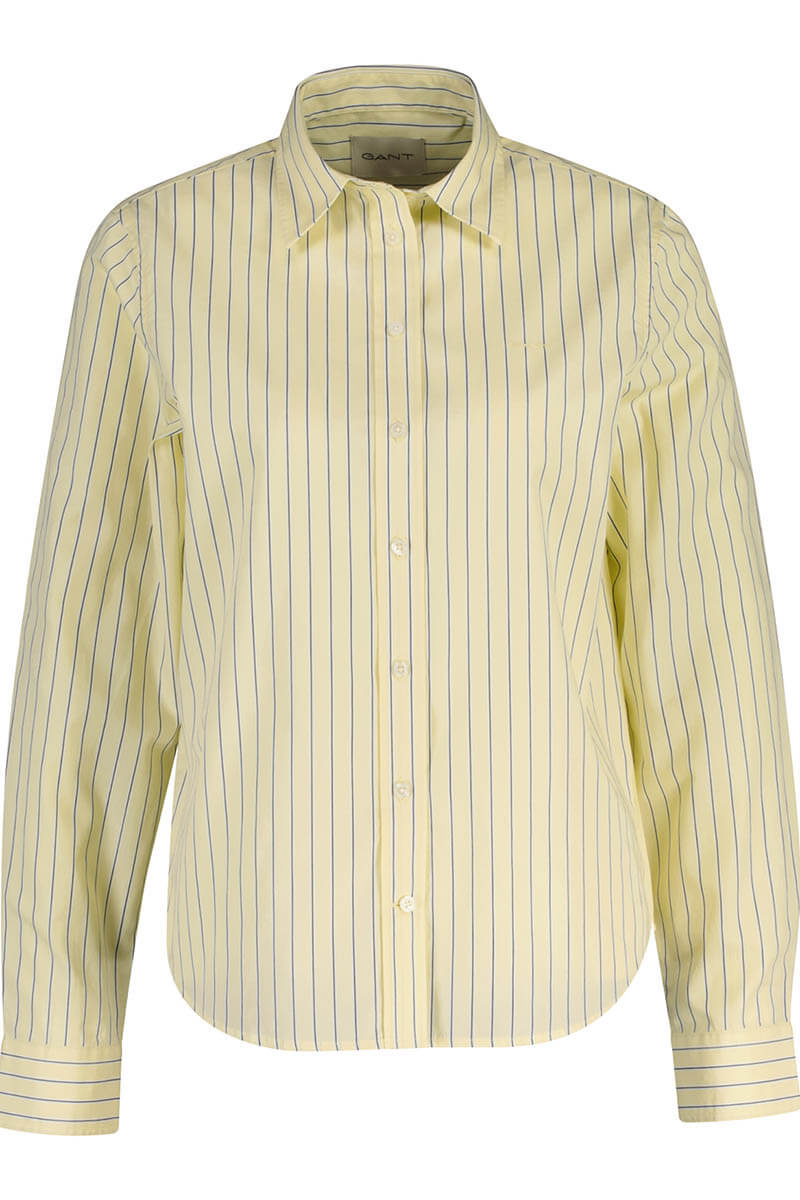 Striped cotton poplin shirt with a pointed collar, chest pocket, rounded hem and a box pleat at the back featuring the iconic locker loop from GANT.- Regular fit, true to size.