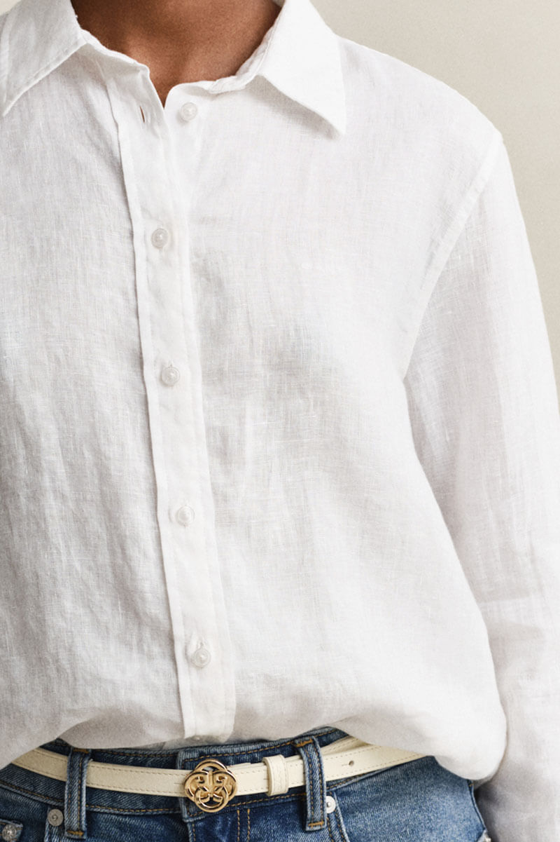 our favorite linen shirt from Gant.This shirt is crafted from certified European flax linen, valued for its breathability and lightweight feel. With a crisp finish that works perfectly for smart-casual occasions, it’s tailored to a regular fit and styled with a point collar, curved hem, and buttoned placket.