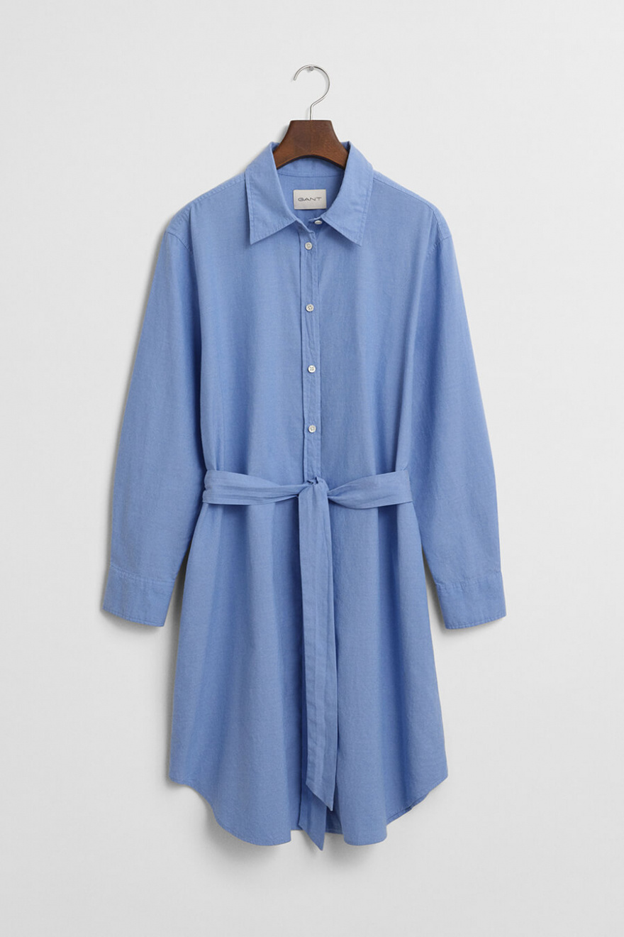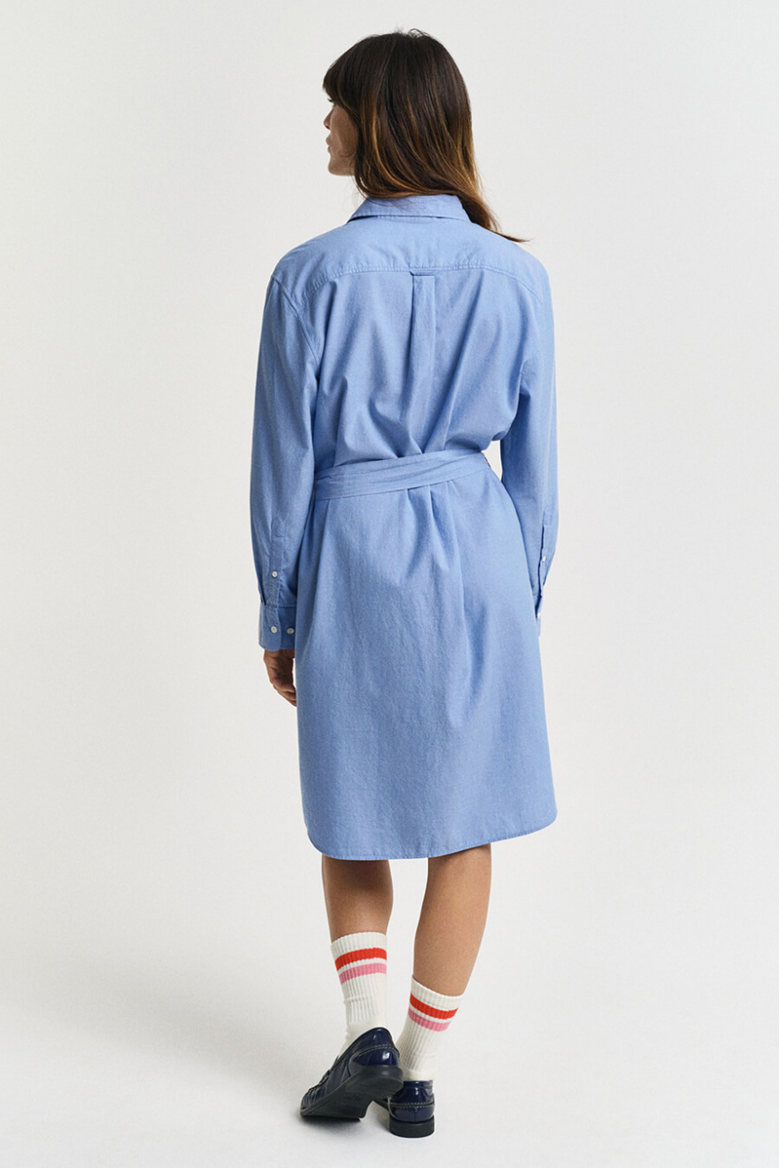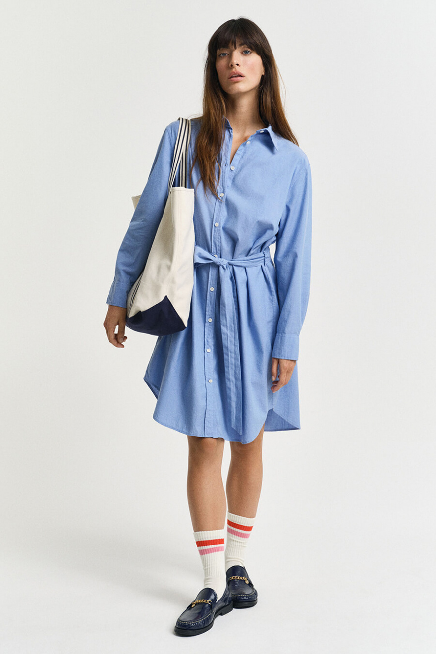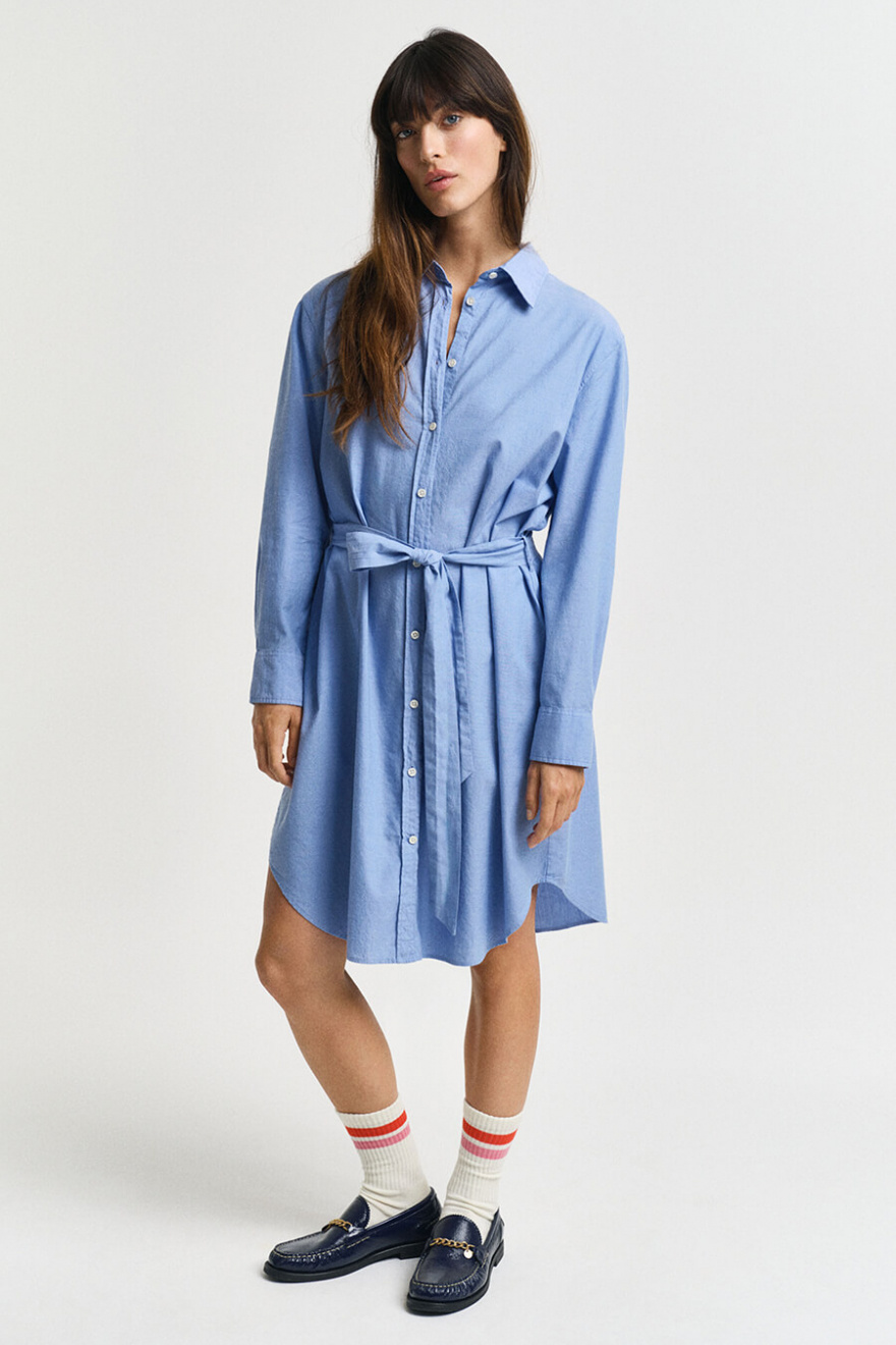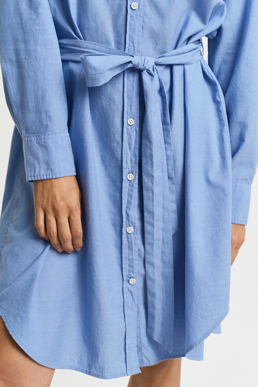 The blue shirt dress you can always rely on – with a relaxed fit and a waist belt that defines the silhouette. Wear it with sneakers by day, heels by night. An easy styling solution for any occasion.Shirtdress in soft cotton with relaxed fit, button closure front, matching belt at the waist, rounded hems and adjustable cuffs from Gant.