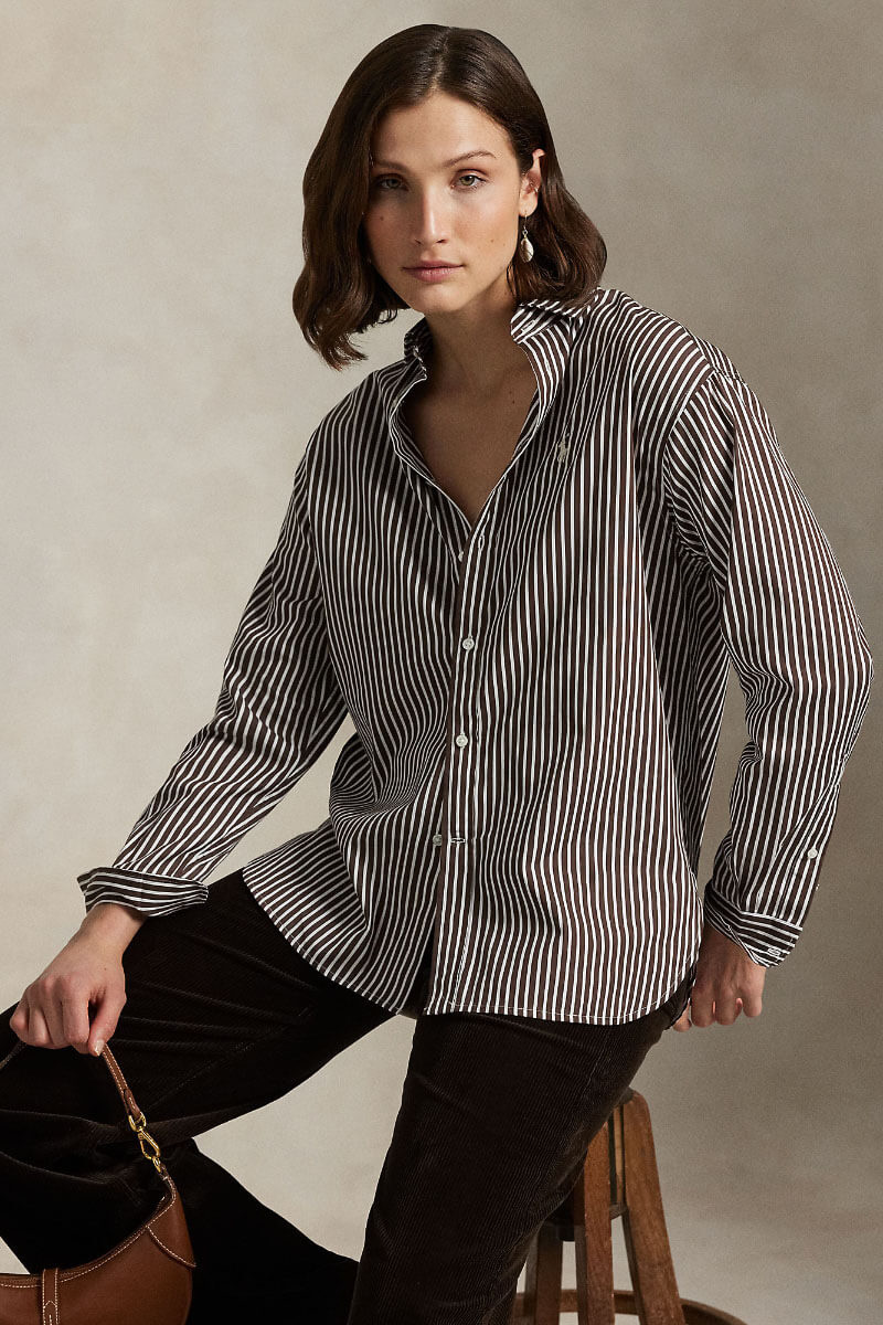 Elevate your fall style with a striped shirt that combines classic cut and modern simplicity. Perfect to style with knit layers, tailored pants and leather accessories. A timeless investment that makes every fall look elegant, relaxed and confident.Striped shirt in crisp cotton with a loose fit, collar, embroidered logo on the front and dropped shoulder seams from Polo Ralph Lauren.