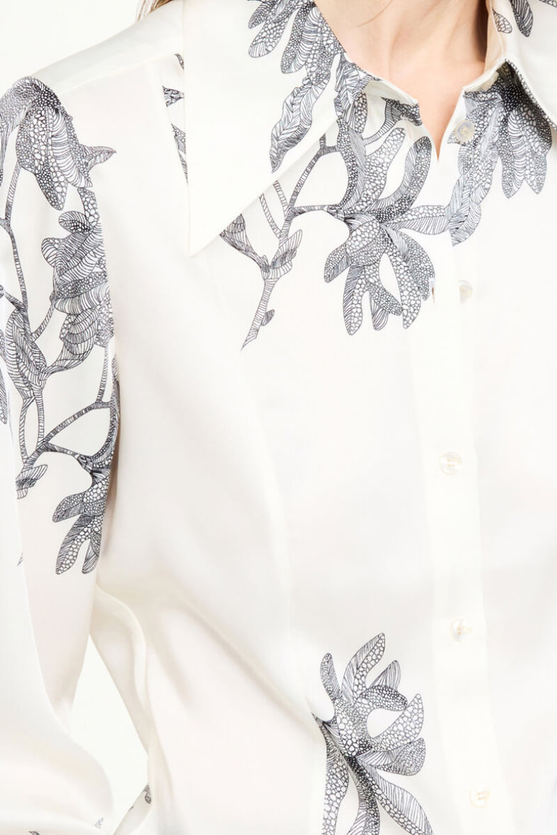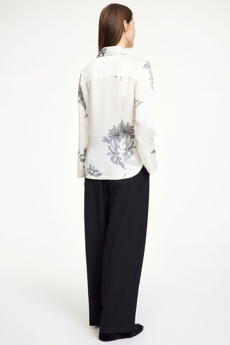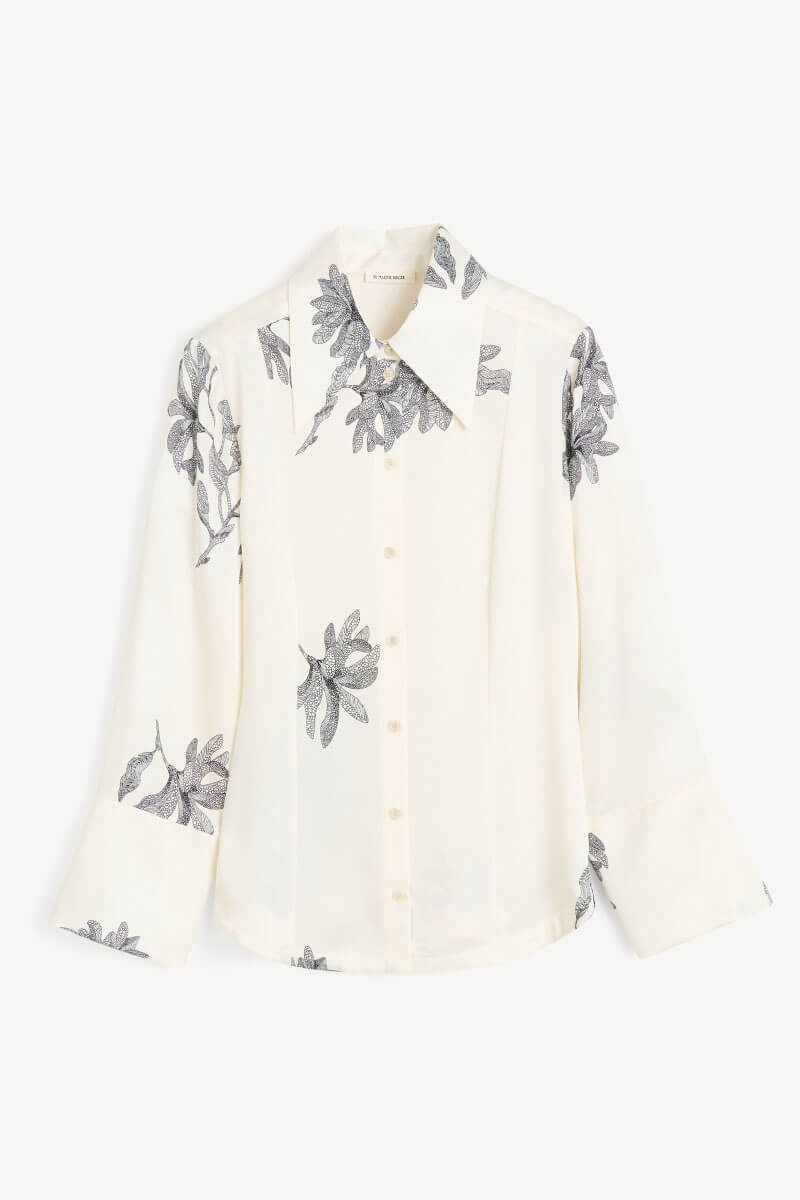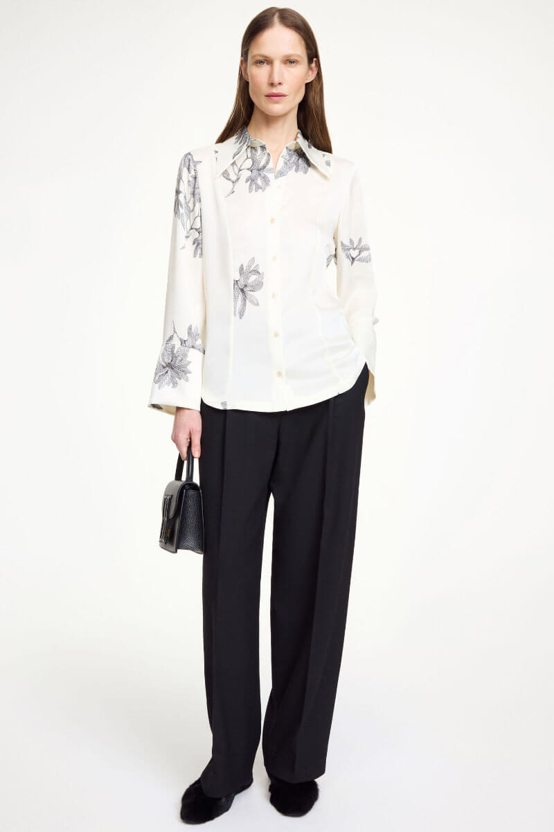A white satin shirt with a pointed collar elevates any outfit – wear it with loose jeans and loafers for a French feel, or tucked into a midi skirt for office chic. Satin adds shine, the silhouette does the rest.Shirt in shiny and soft satin with a pointed collar, button closure at the front, regular fit and wide cuffs from By Malene Birger.