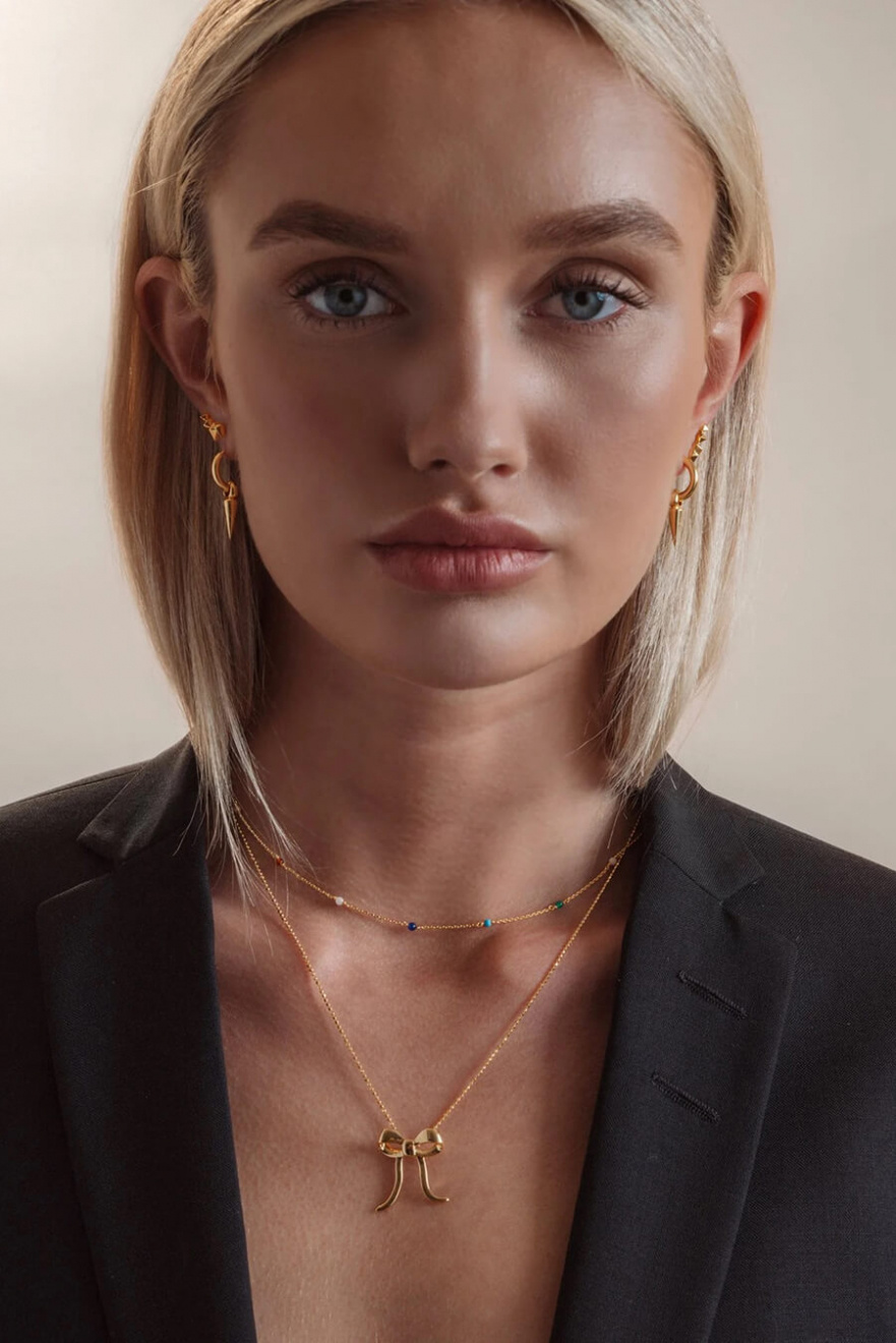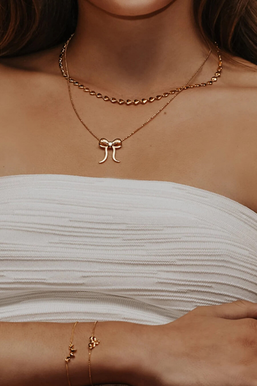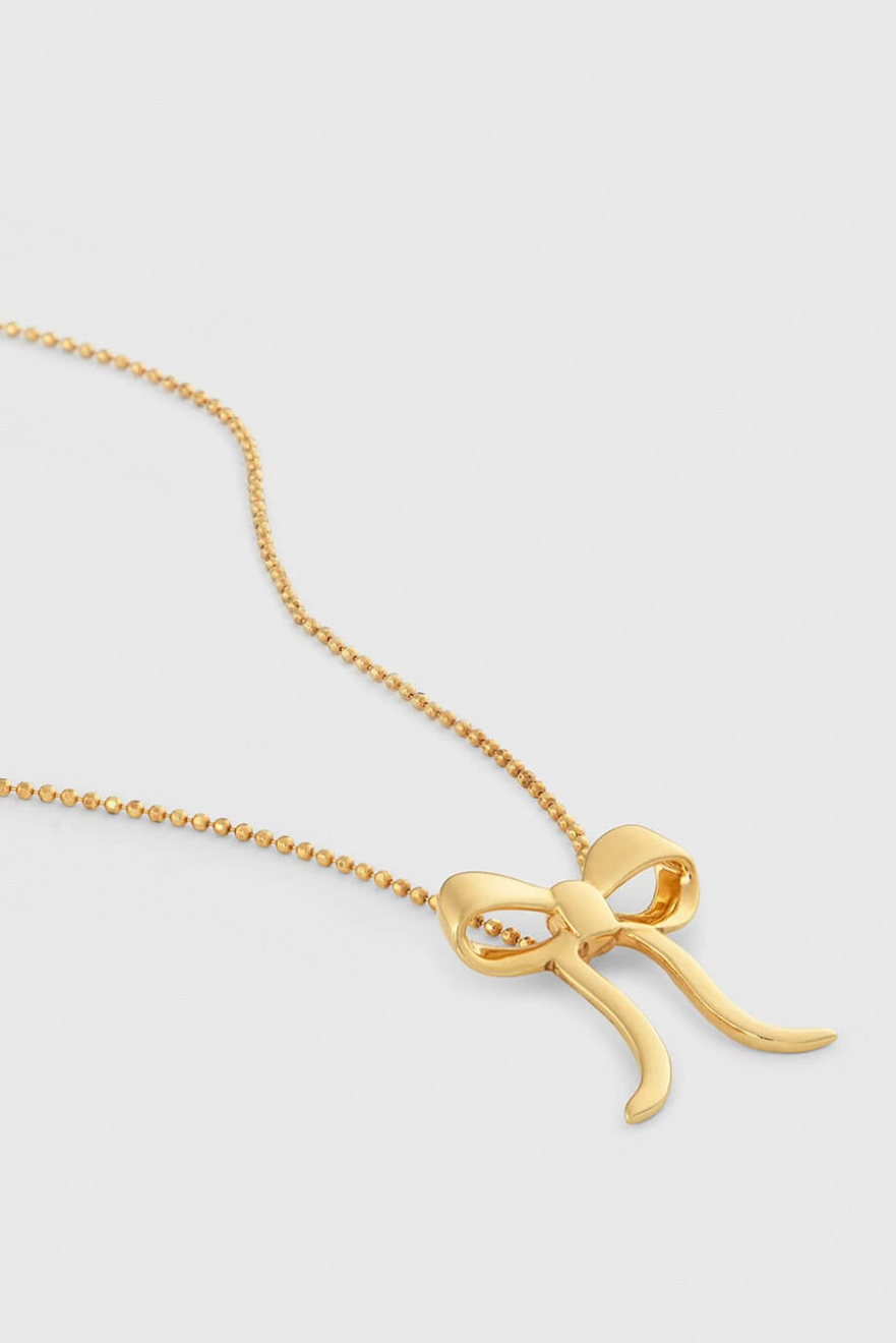The necklace features a big bow pendant and a structured, sparkling chain that really catches the light. If you're looking for the perfect statement necklace to elevate your look, you've found it!