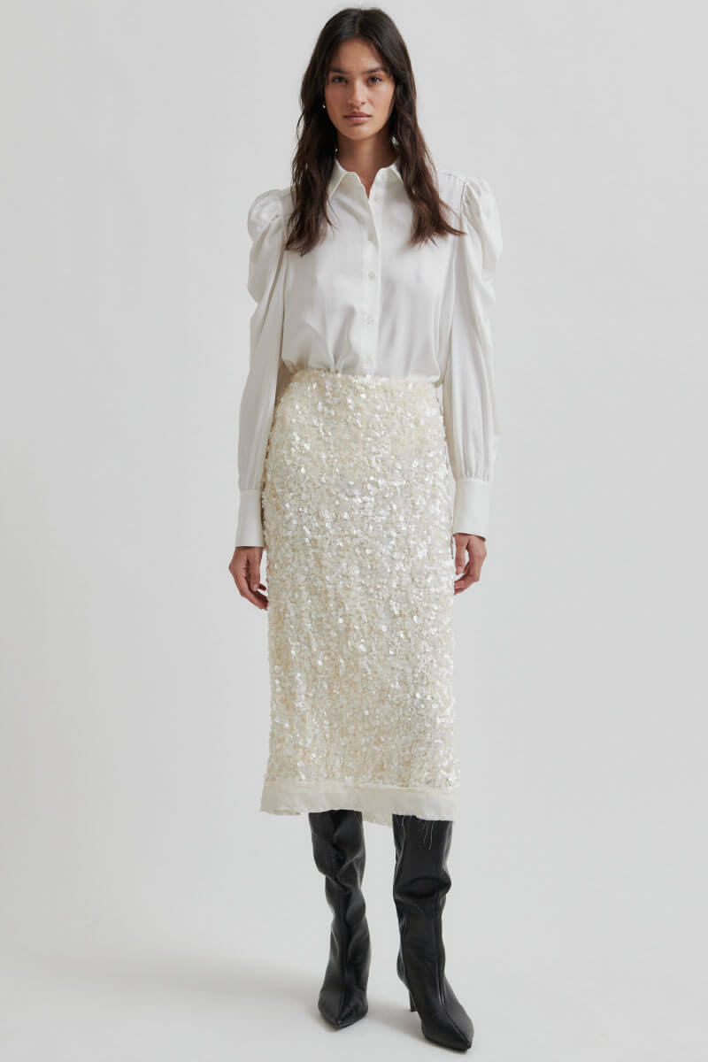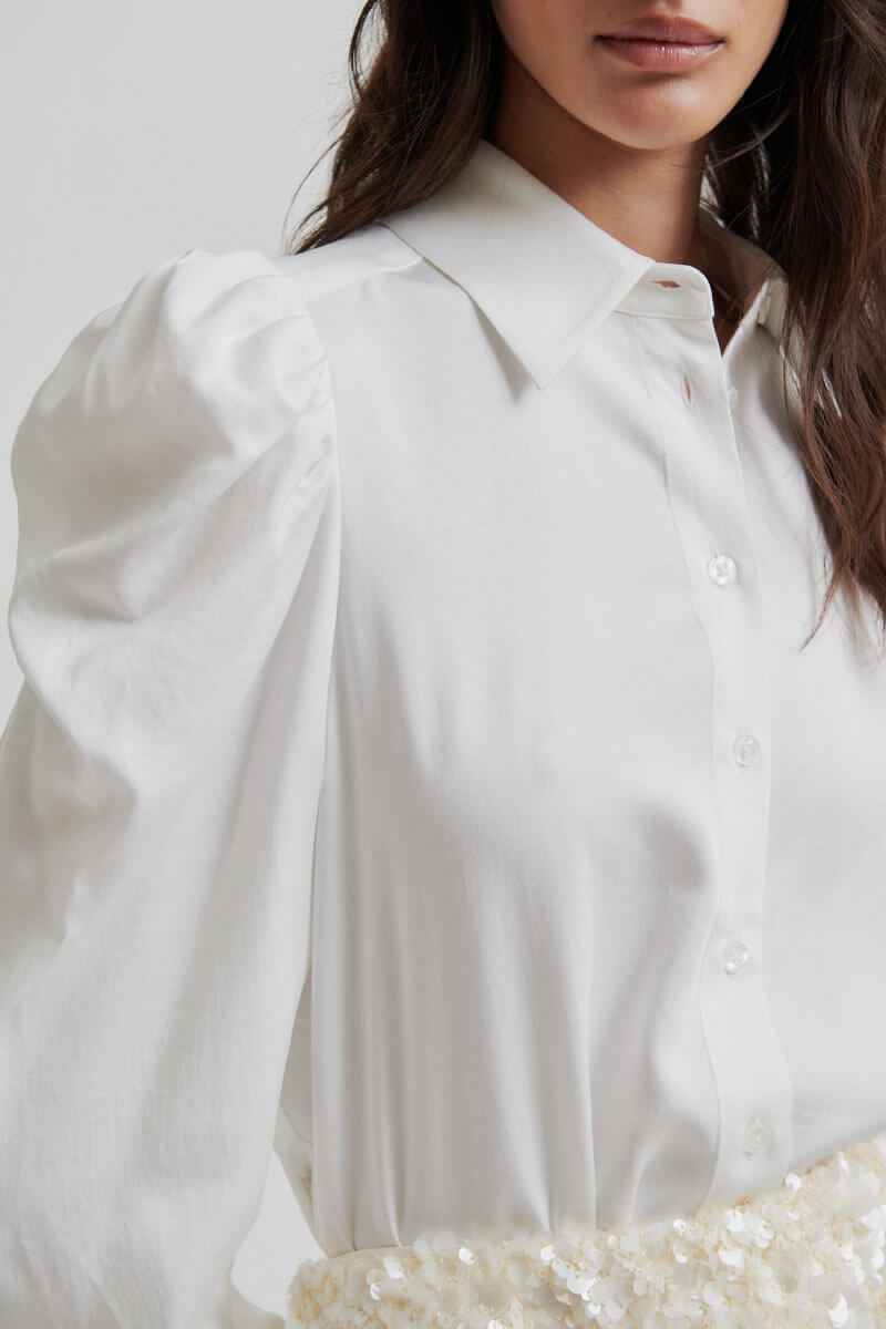 Blouse with puff sleeves and classic collar that gives a romantic yet modern feel. Combine with tailored black trousers and loafers for day, or with a midi skirt and slim heels for a sophisticated evening look with volume and elegance.Blouse in a soft viscose blend with puffy long sleeves, collar, button closure front and relaxed fit from Second Female.