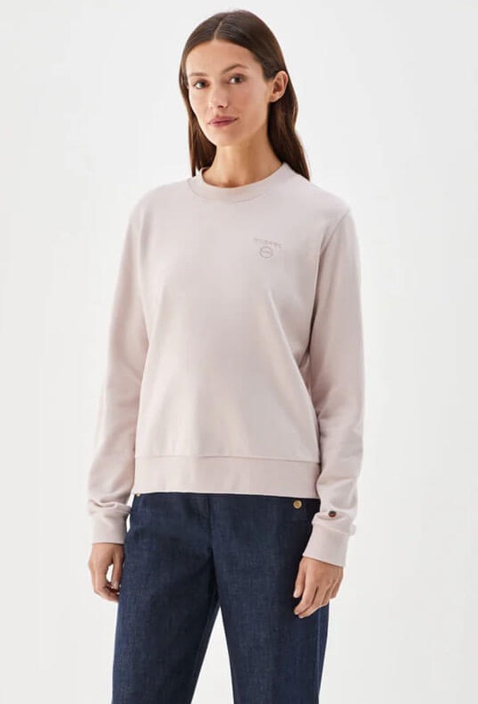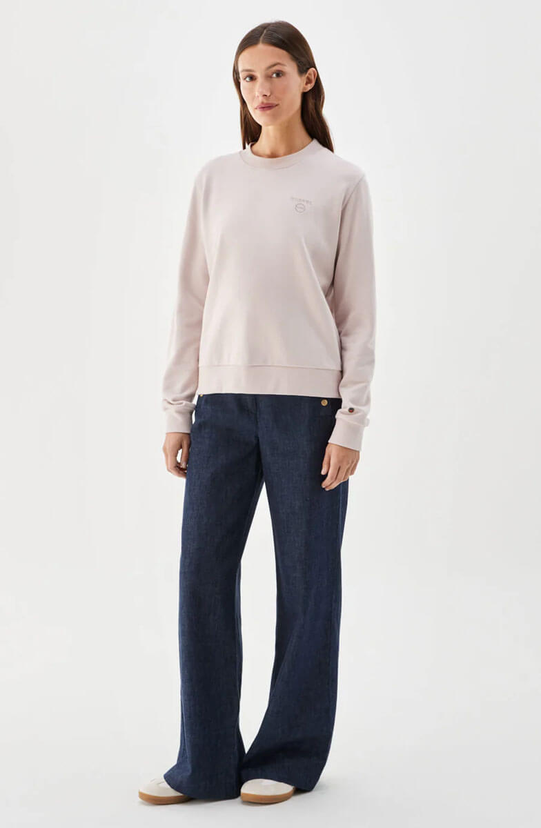 Samantha sweatshirt from Busnel is a timeless and elegant sweatshirt for women. It features a subtle tone-on-tone embroidered Busnel logo on the chest, a classic round neckline, long sleeves, and a relaxed fit. An easy wardrobe essential that pairs perfectly with denim or linen for a relaxed, summery look.