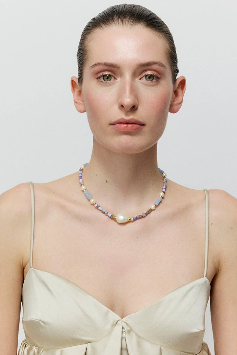Shore Necklace taupe by Vanessa Baroni, combines modern designer jewelry design with a striking design language.