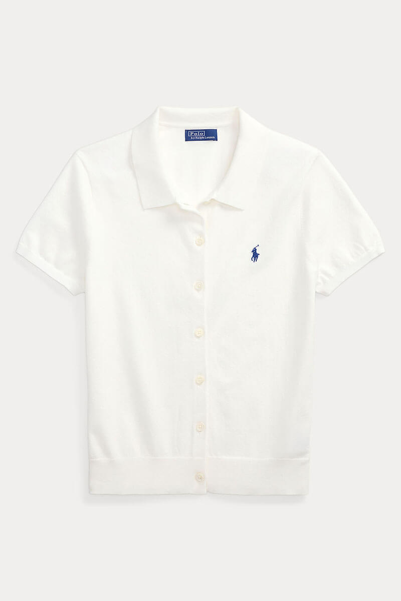Timeless elegance meets modern simplicity – this white short-sleeved cardigan in soft cotton is the perfect wardrobe staple. Wear it with jeans or a skirt for a casually chic look.Cardigan in a soft cottonblend with short sleeves, collar, ribbknitted edges, slim fit, button closure front and small embroidered logo front from Polo Ralph Lauren.