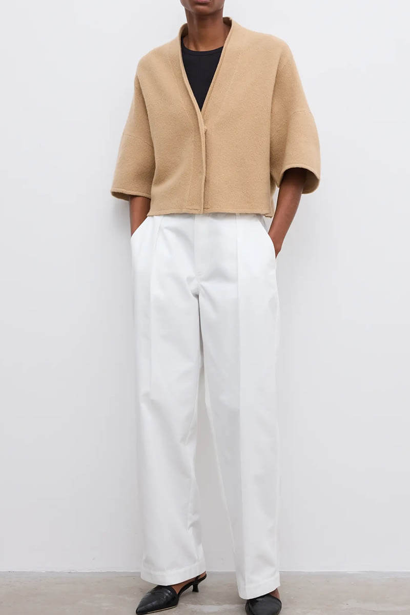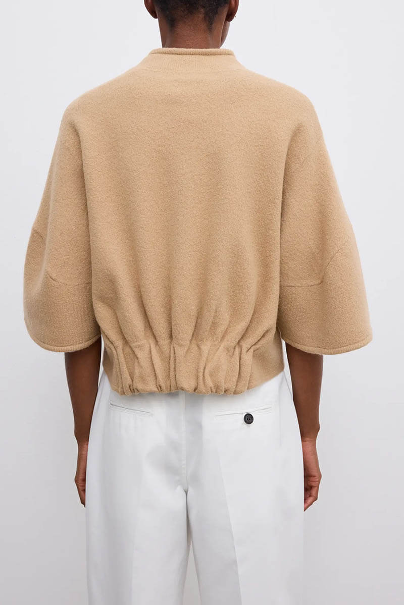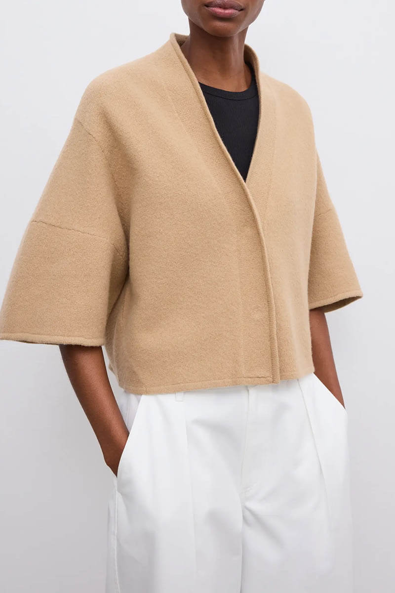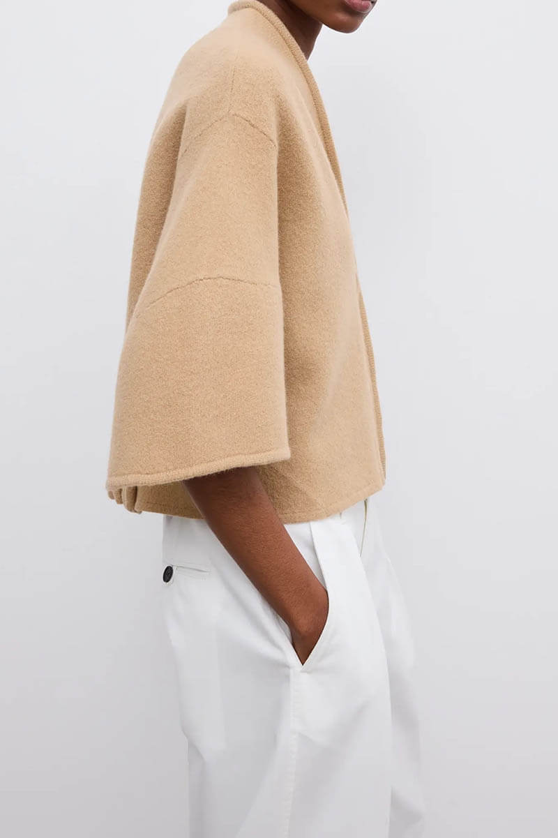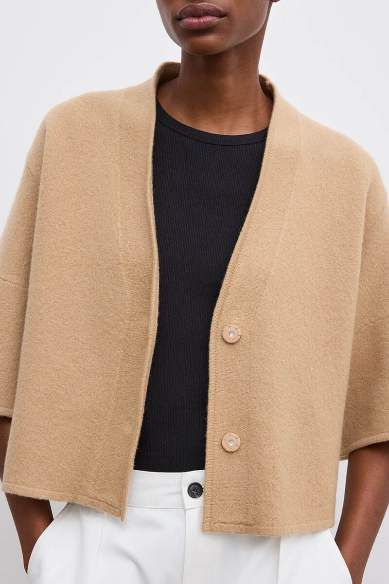 Short wool cardigan, Camel