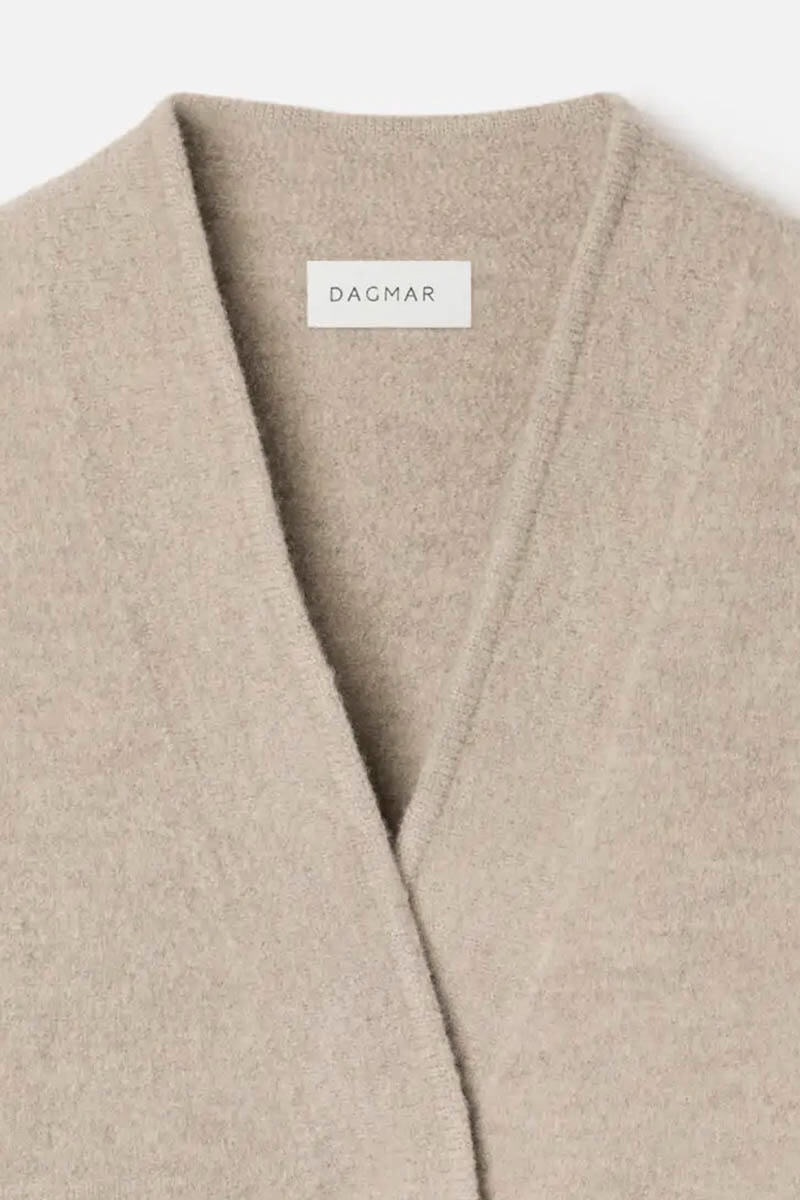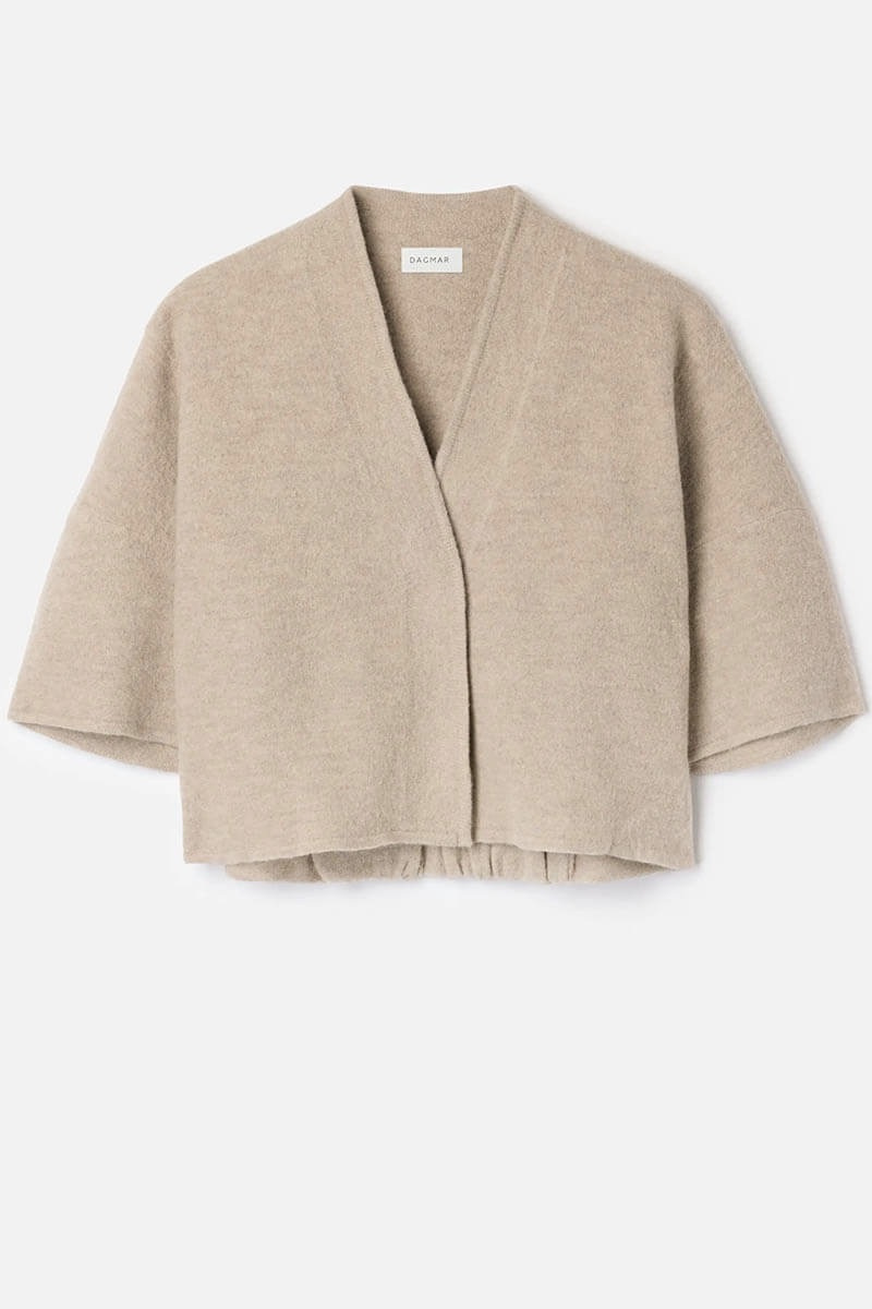 Dagmar’s iconic little wool cardigan-jacket, now in an updated design. Incredibly versatile – a piece you'll keep forever!V-neck cardigan in rich and structured 100% mulesing-free merino wool. A Dagmar essential featuring a cropped silhouette, gently rounded shoulders, and concealed front buttons.