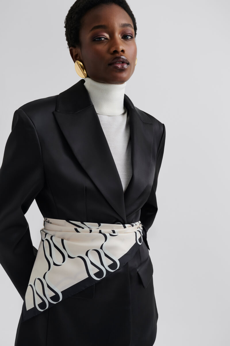Elegant silk scarf that can be worn in your hair, around your neck or as an extra detail to your bag!Scarf in silk with sewn edges and in monogram print from Malina.