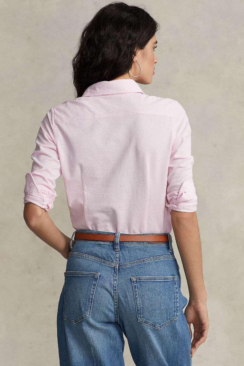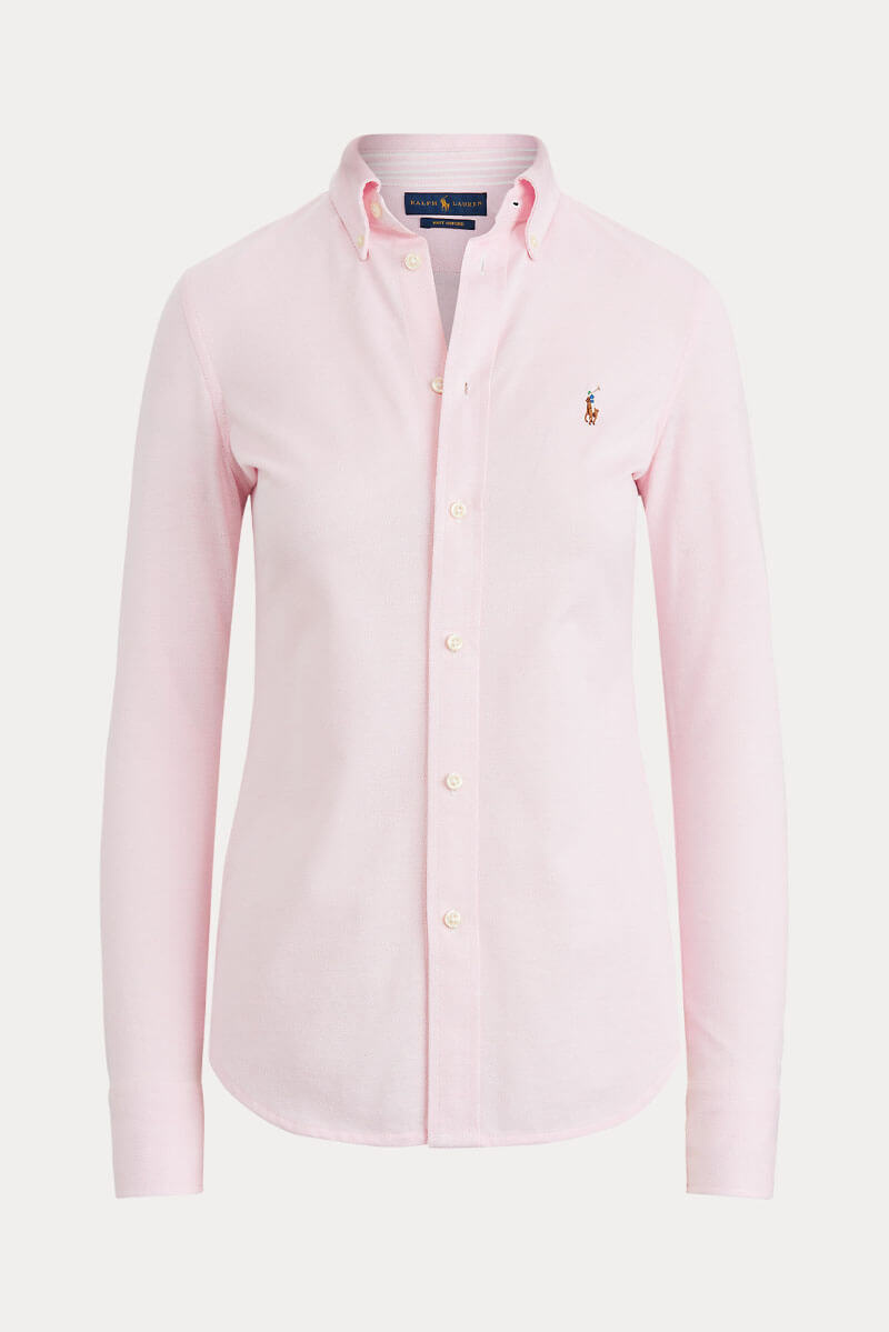 The pink oxford shirt balances classic and modern. Style it tucked into tailored trousers, add loafers and a trench coat for a sophisticated fall look. A shirt that always delivers timeless elegance, relaxed luxury and stylish simplicity.Soft shirt in jersey with button down collar, stretch small embroidered logo front, adjustable cuffs and slim fit from Polo Ralph Lauren.