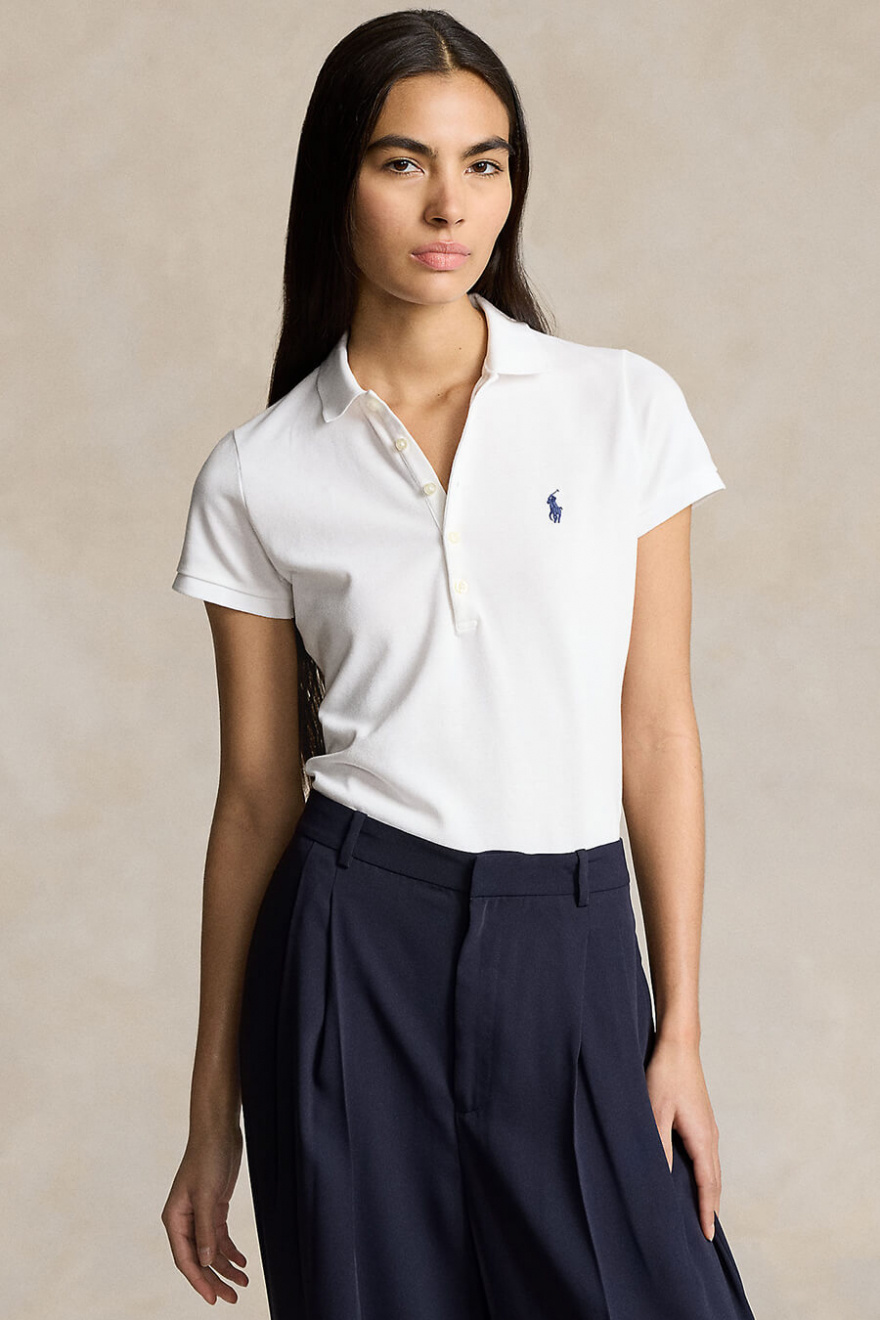A slim-fit white polo shirt is the definition of timeless elegance. With short sleeves and a sharp silhouette, it's a key piece in every wardrobe - just as good with jeans as it is under a blazer. A classic to return to.Cotton polo shirt with a slim fit, collar, small embroidered logo on the front, short sleeves and button closure at the front from Polo Ralph Lauren.