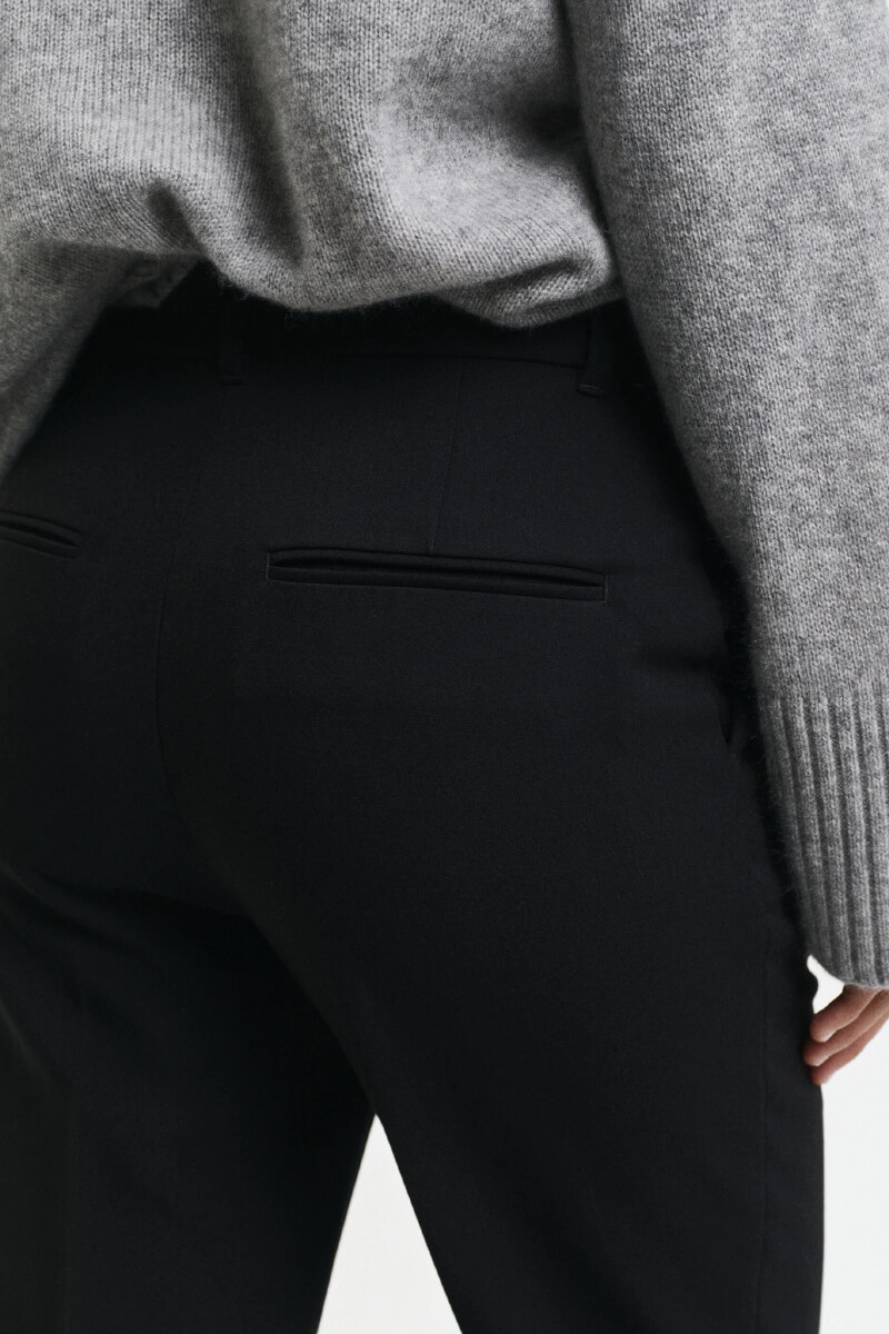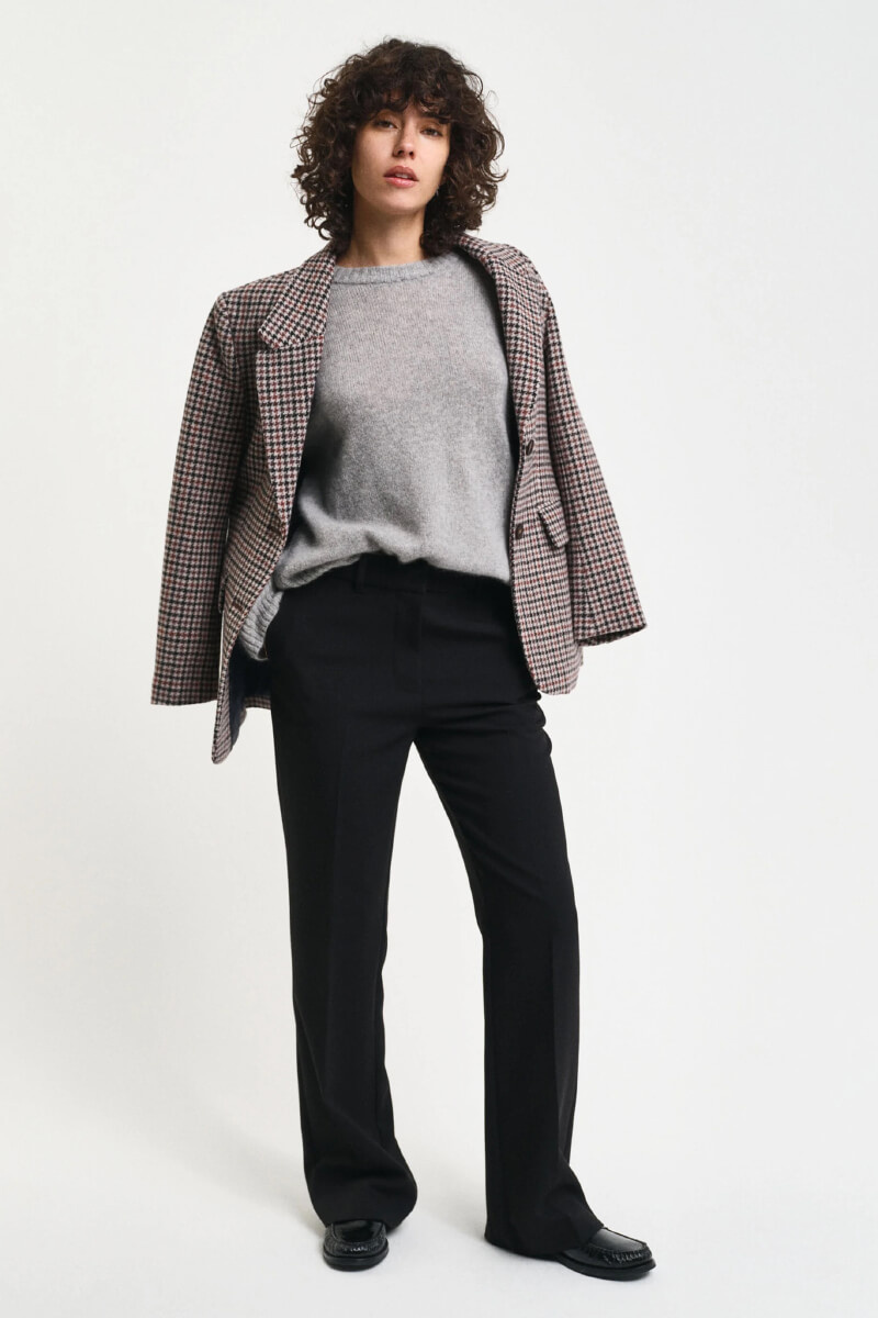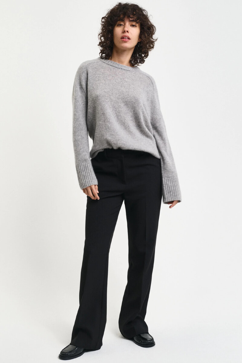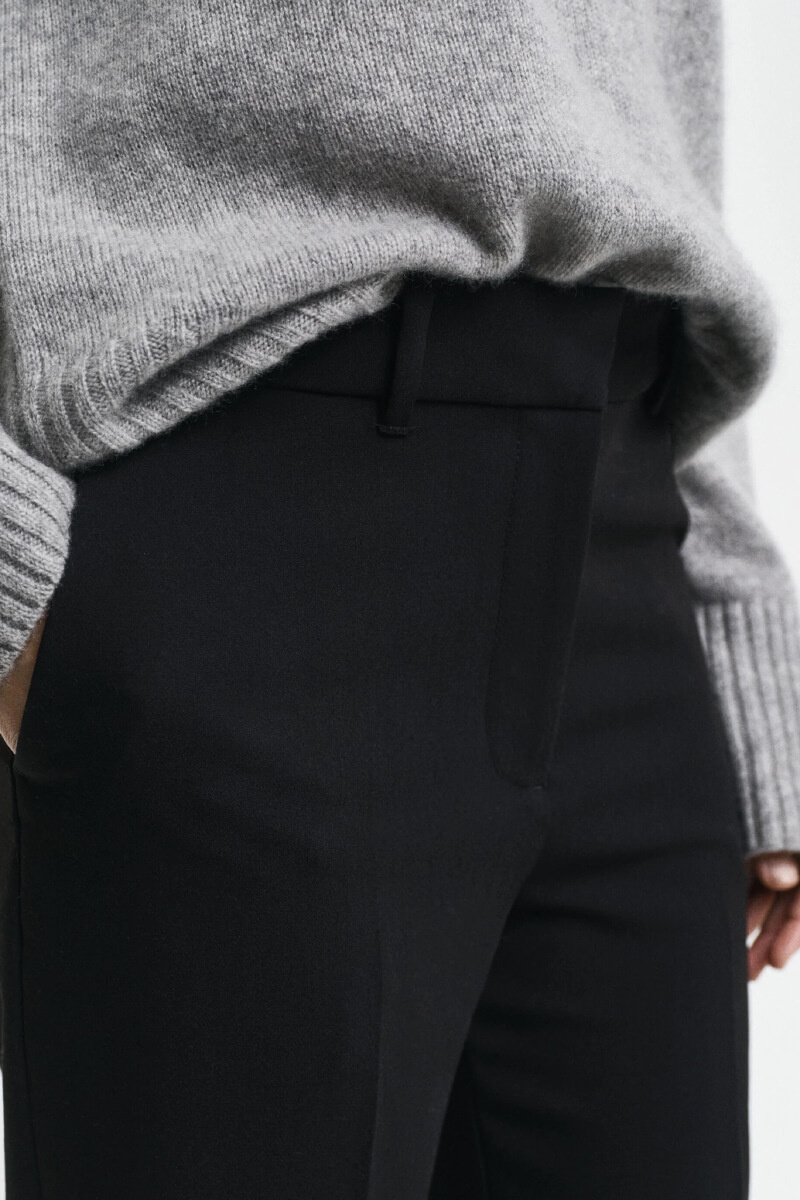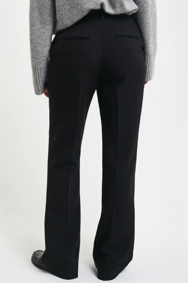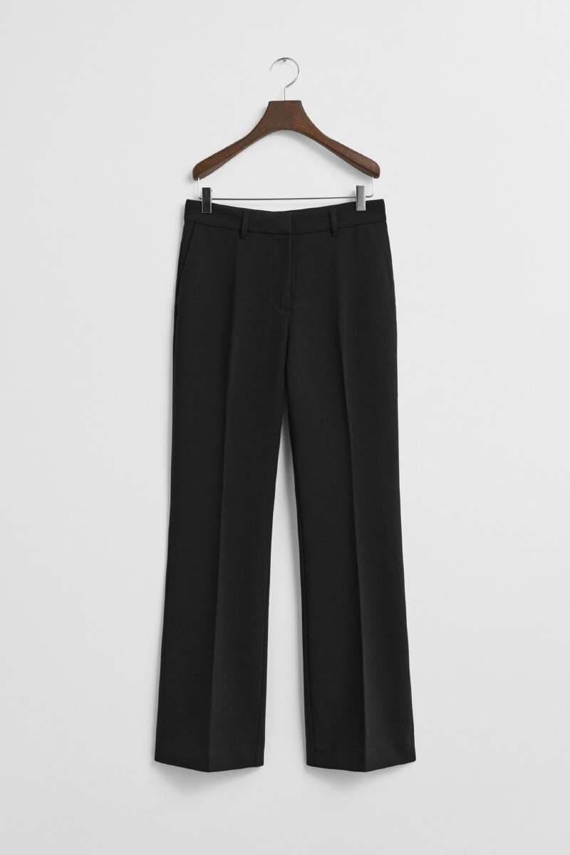 Black trousers with a mid-rise waist and flared legs that balance between everyday and evening. Pair them with a silk blouse for an elegant look or an oversized knit sweater for a casual feel - trousers that always feel right on time.Trousers in a recycled blend with mid waist, flared legs, pockets at the sides and full length from Gant.