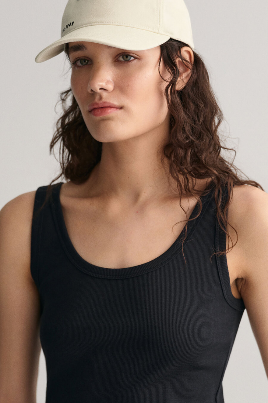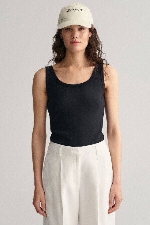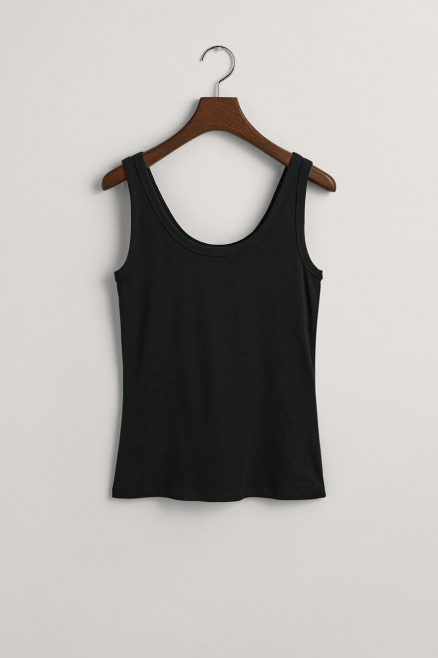 Ribbed tank top with a slim fit, rounded neckline and embroidered logo at the bottom from Gant.- 58% Cotton, 38% Modal, 4% Elastane