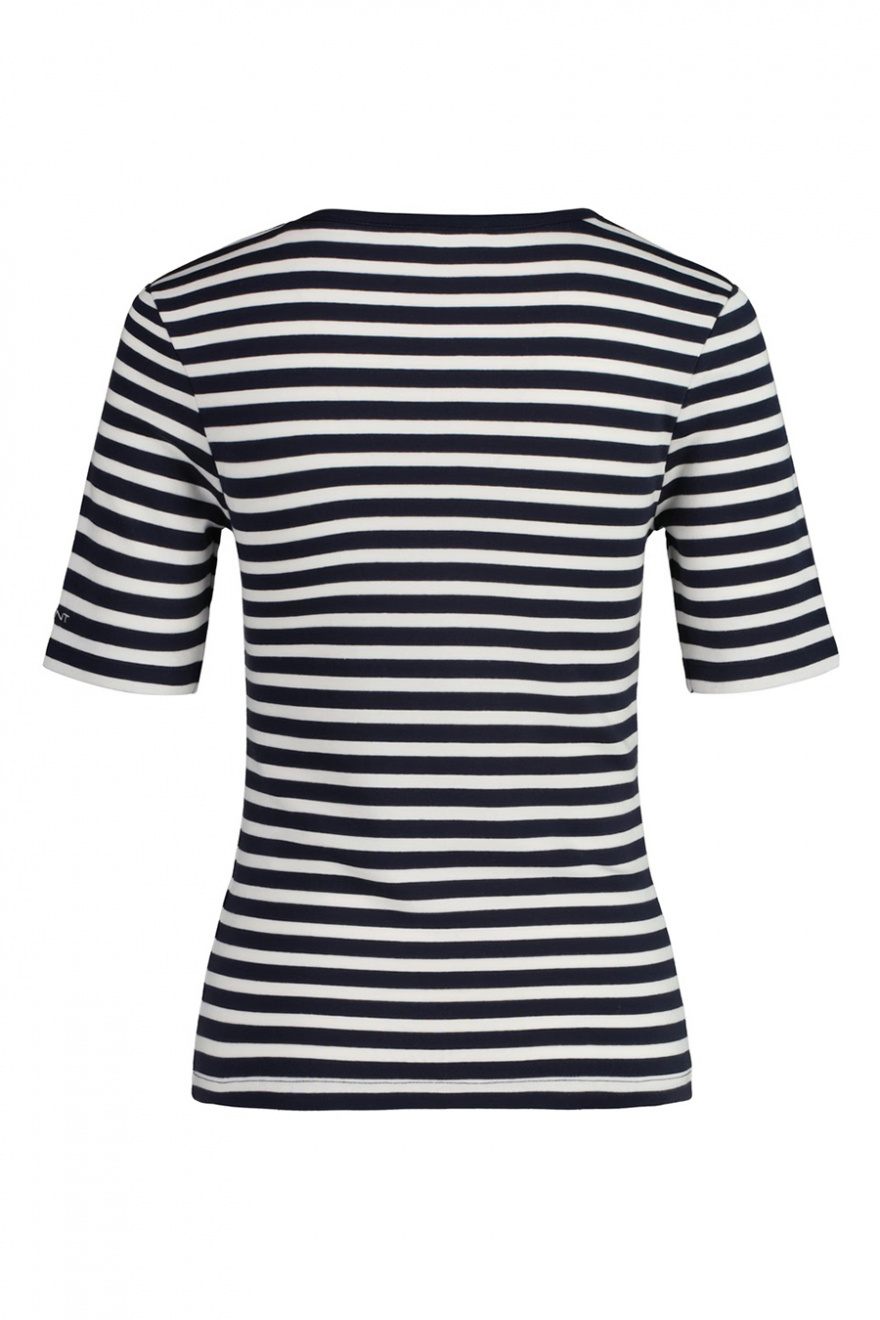 The striped t-shirt in a slim fit with a round neckline is the definition of stylish minimalism. A must for the basic wardrobe, perfect to wear with both denim and blazer. Timeless, chic and an obvious choice!Striped top in a cottonblend with round neckline, slim fit and embroidred logo at the end of sleeve from Gant.